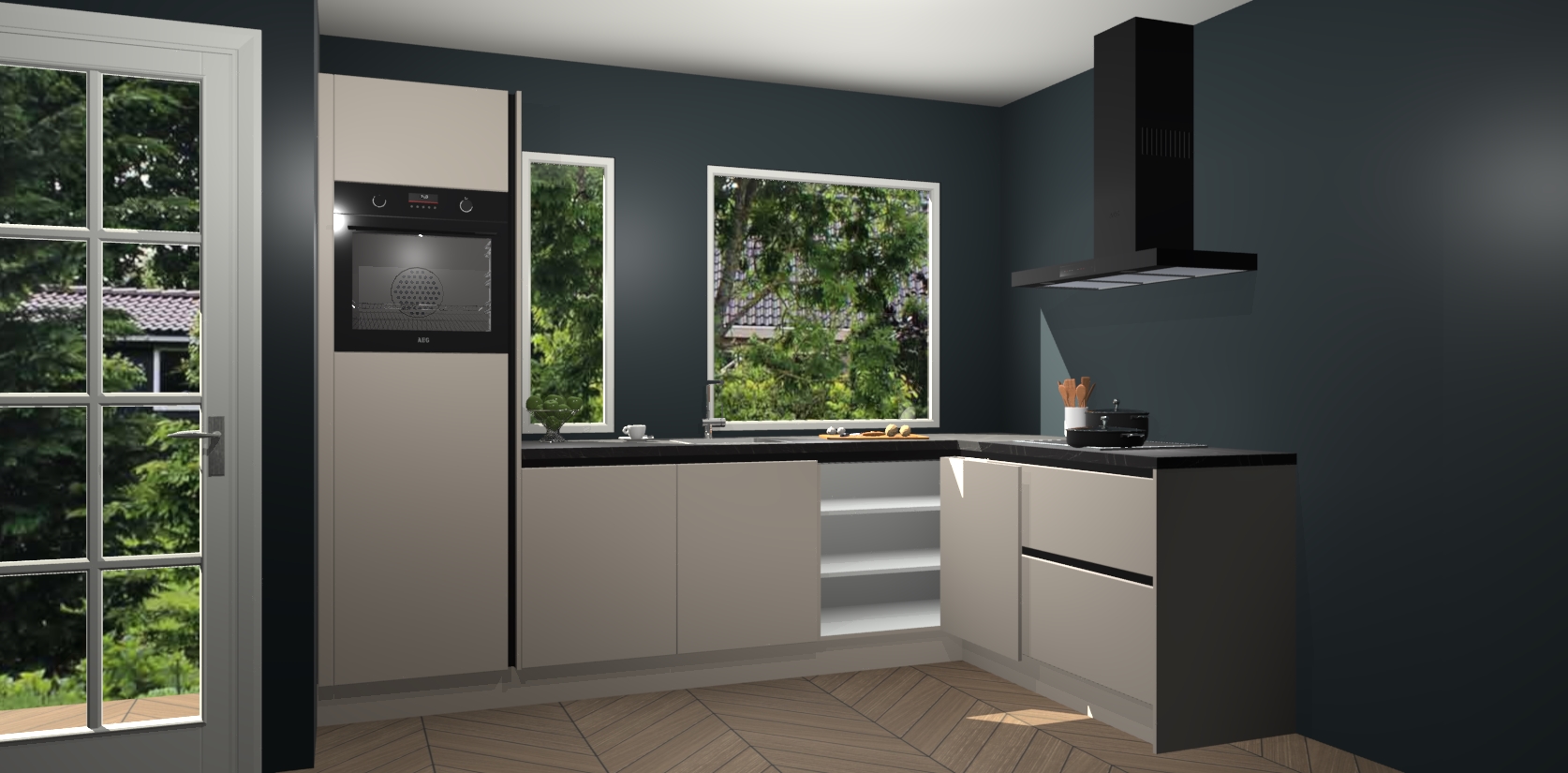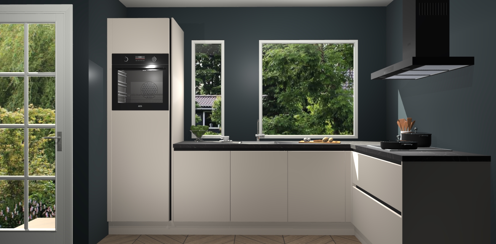 Deze complete keuken wordt geleverd met 5 inbouwapparaten: een oven, inductiekookplaat, afzuigkap, vaatwasser en koelkast. De toestellen kunnen na bestelling ook gemakkelijk worden opgewaardeerd naar AEG. Bovendien is elke deur in deze keuken voorzien van handige softclose technologie voor eenvoudig gebruik! Als een leuke toevoeging zit in deze keuken ook een carrousel, zo hoef je niet meer de hoek in duiken om iets te pakken.