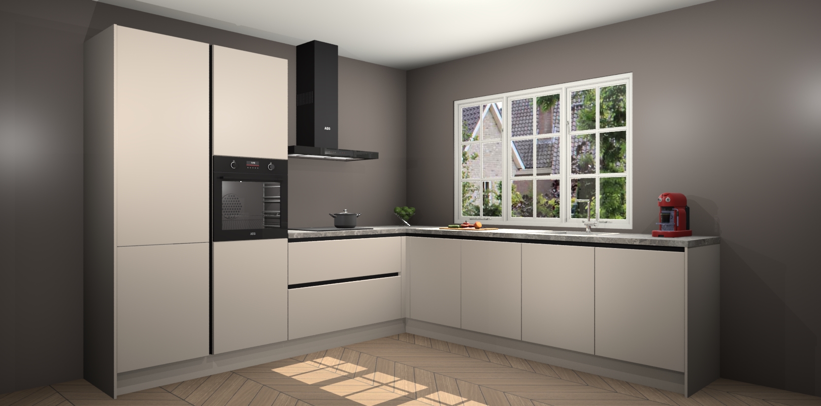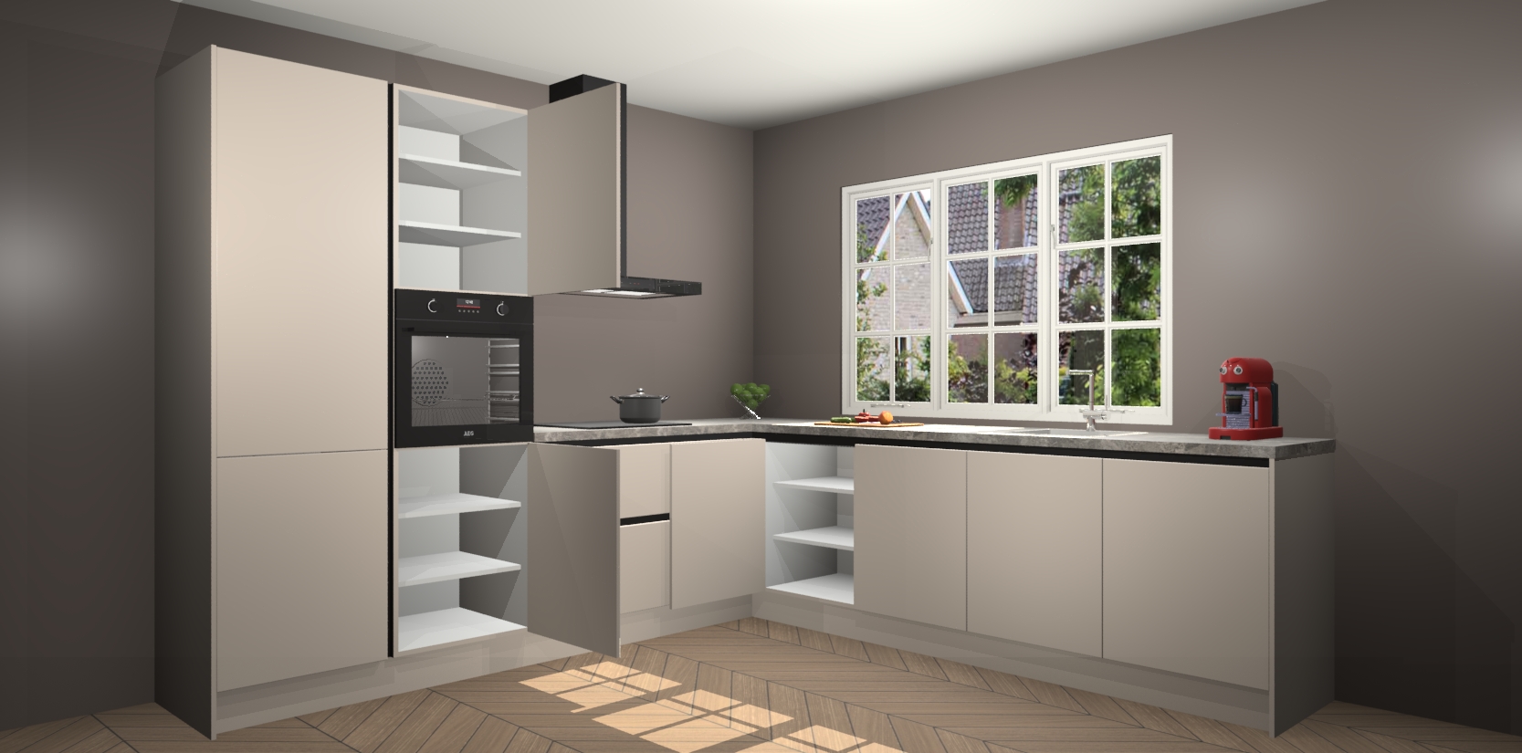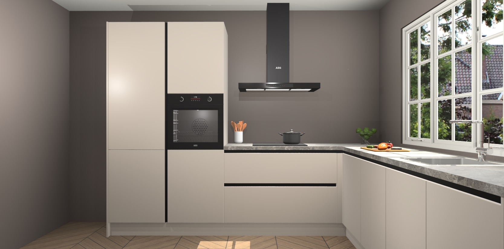 De keuken heeft veel opbergruimte, waardoor u alle ingrediënten gemakkelijk bereikbaar hebt staan. En daarnaast bevat deze volledig uitgeruste keuken ook 5 ingebouwde apparaten: een oven, inductiekookplaat, afzuigkap, vaatwasser en koelkast. Deze zijn heel eenvoudig na bestellen te upgraden naar AEG als u dit wilt. Bovendien zijn de softclose-kastdeuren ideaal; geef ze gewoon even een tikje en ze sluiten automatisch met geruisloze precisie.