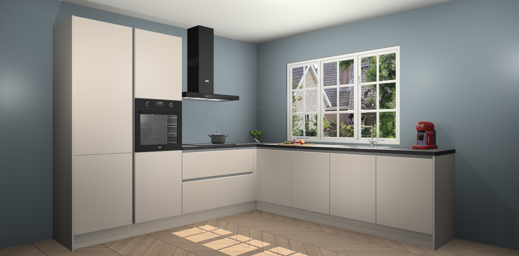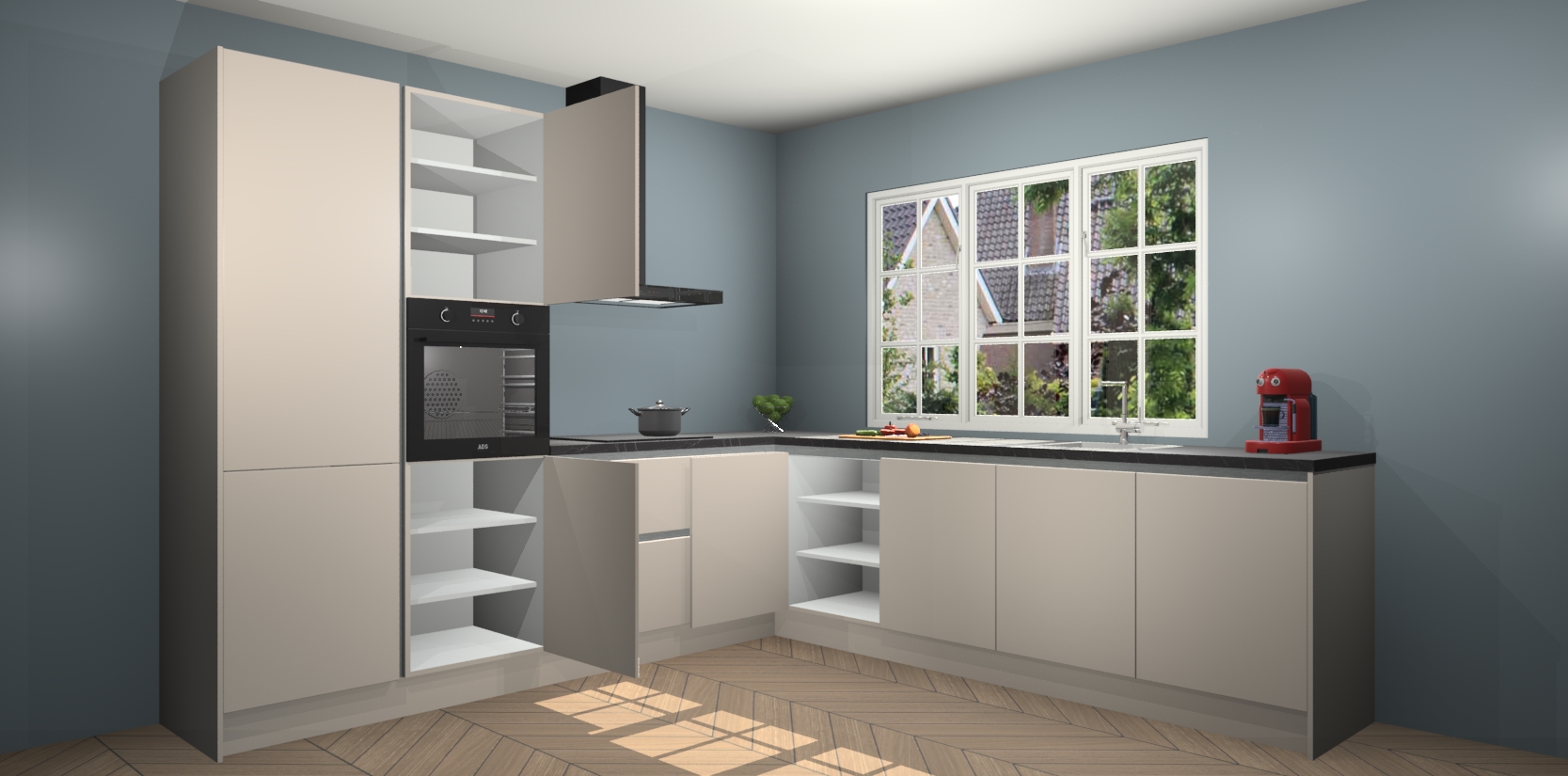 De keuken heeft veel opbergruimte, waardoor u alle ingrediënten gemakkelijk bereikbaar hebt staan. En daarnaast bevat deze volledig uitgeruste keuken ook 5 ingebouwde apparaten: een oven, inductiekookplaat, afzuigkap, vaatwasser en koelkast. Deze zijn heel eenvoudig na bestellen te upgraden naar AEG als u dit wilt. Bovendien zijn de softclose-kastdeuren ideaal; geef ze gewoon even een tikje en ze sluiten automatisch met geruisloze precisie.