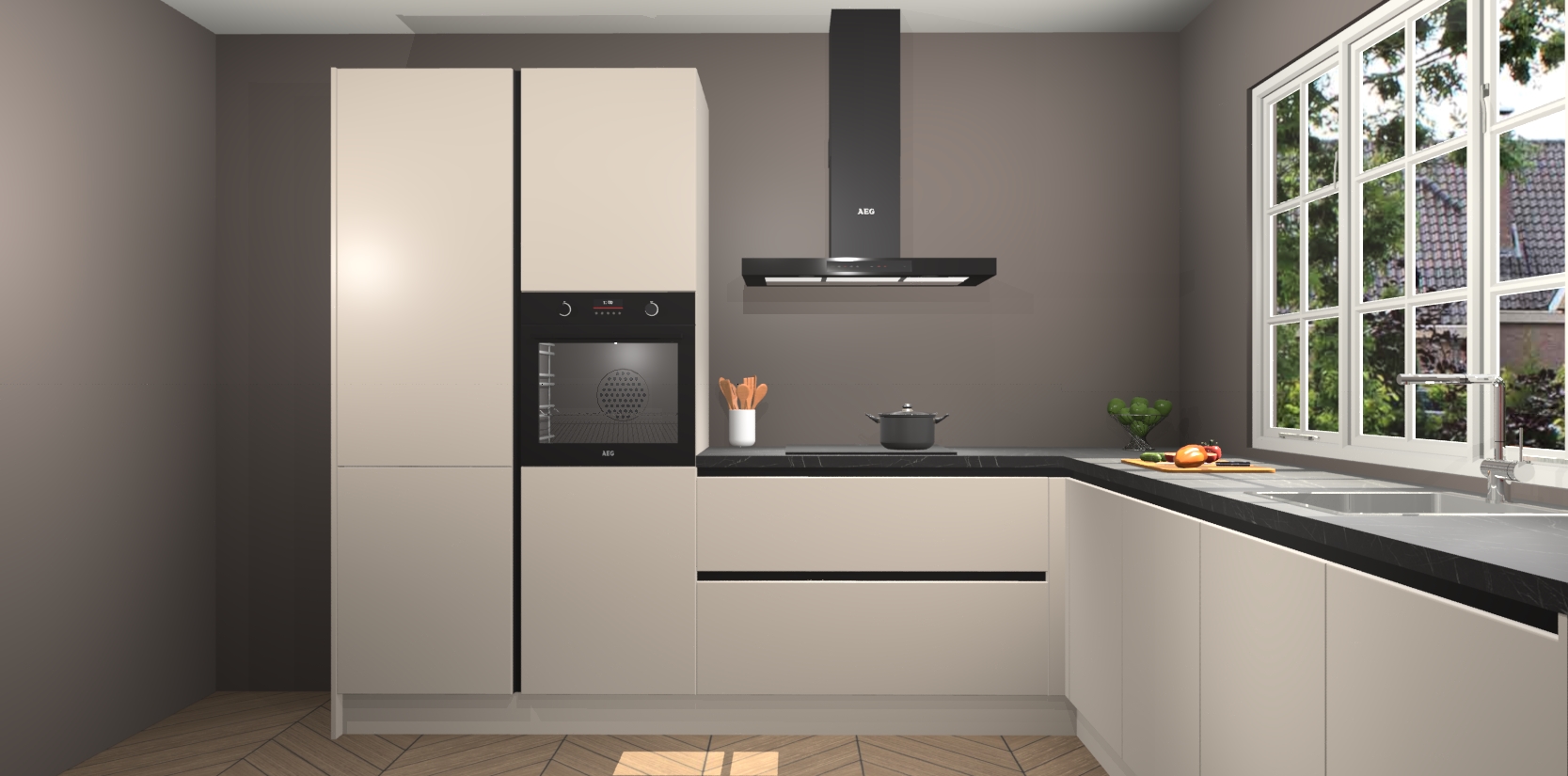 De keuken heeft veel opbergruimte, waardoor u alle ingrediënten gemakkelijk bereikbaar hebt staan. En daarnaast bevat deze volledig uitgeruste keuken ook 5 ingebouwde apparaten: een oven, inductiekookplaat, afzuigkap, vaatwasser en koelkast. Deze zijn heel eenvoudig na bestellen te upgraden naar AEG als u dit wilt. Bovendien zijn de softclose-kastdeuren ideaal; geef ze gewoon even een tikje en ze sluiten automatisch met geruisloze precisie.