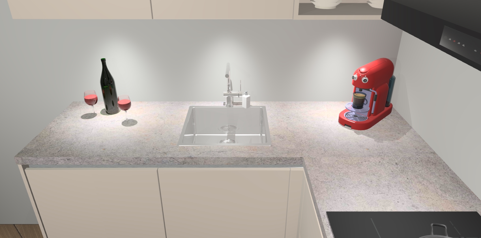- Bij een hoekwerkblad zijn de hoeken in gevreesd en op maat gemaakt