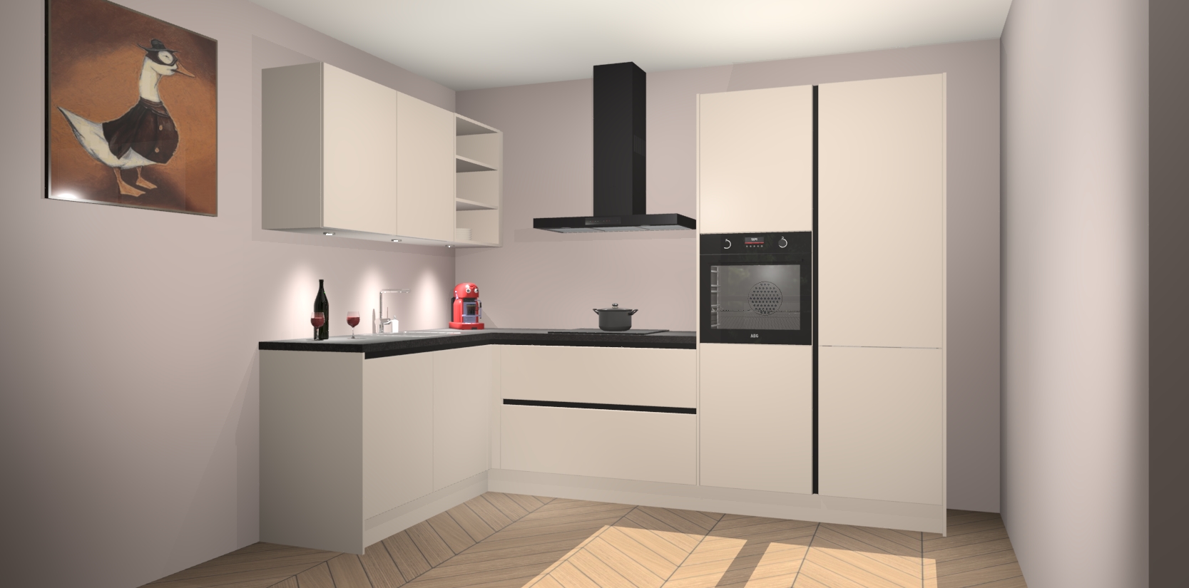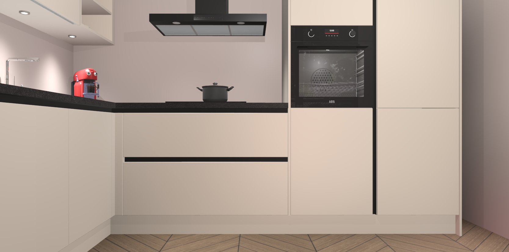 De kasjmier greeploze keuken Cognac is een adembenemend ontwerp met een modern en tijdloos uiterlijk. Deze luxe keuken straalt echt aristocratisch uit, waardoor uw koken plezieriger zal worden! Het prachtige design begint bij de hoekkeuken, wat perfect past bij elk type interieur. Bovendien bevat deze hoogwaardige set vijf inbouwapparaten - van oven tot koelkast - die via bestelling naar AEG geüpgraded kunnen worden!