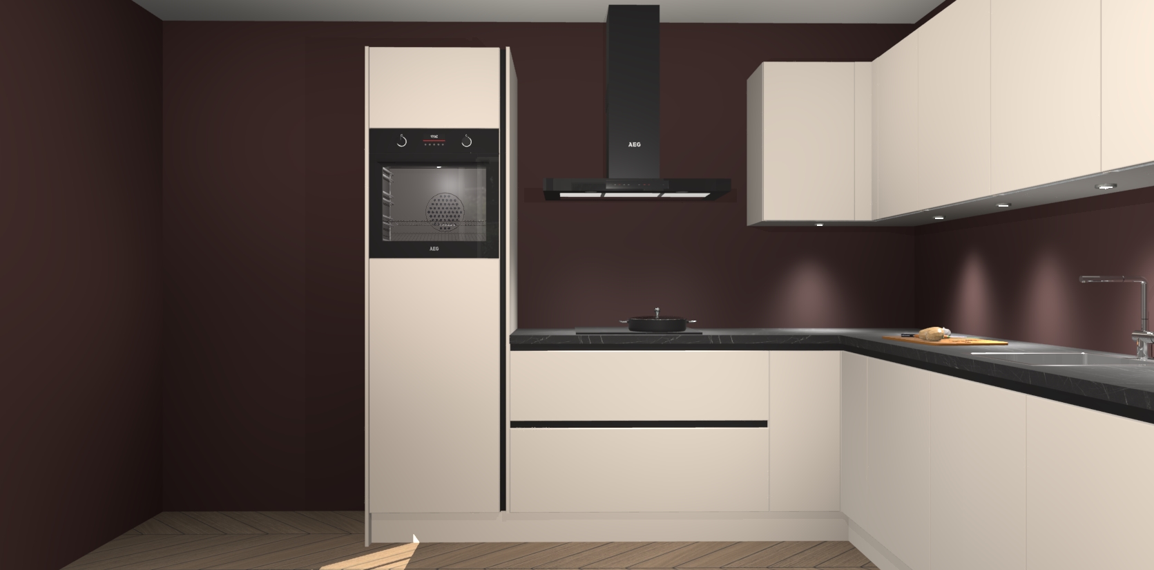 De Kasjmier greeploze keuken Debar is uitgerust met vijf inbouwapparaten die elke kooktaak handig en efficiënt maken. Een oven, inductiekookplaat, afzuigkap, vaatwasser en koelkast zijn standaard, maar kunnen na bestelling eenvoudig worden geupgrade naar AEG. Profiteer vervolgens van de softclose deuren voor snelle toegang en geruisloze toegang.