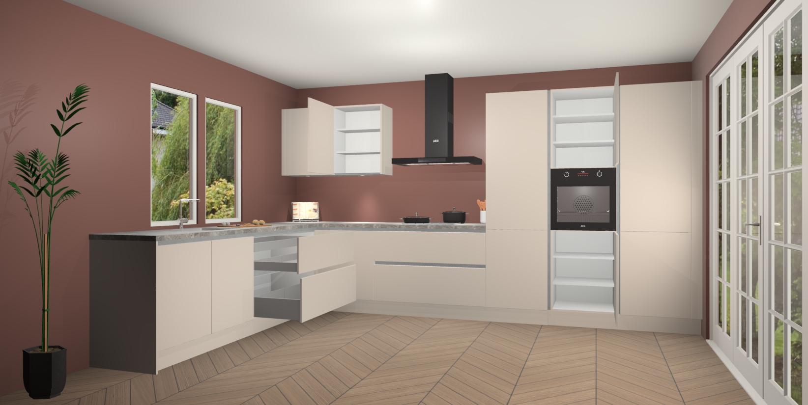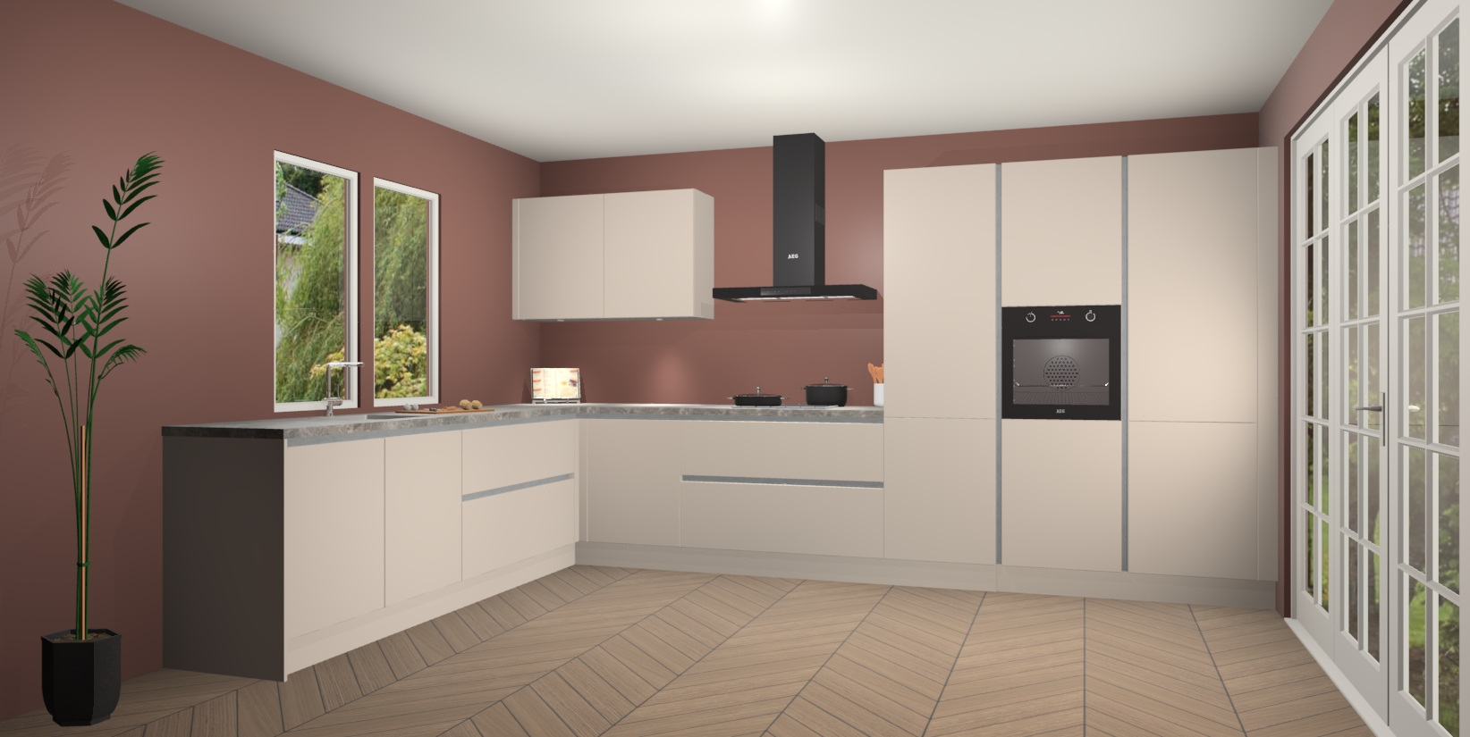 Inclusief plinten, stelpoten en werkblad