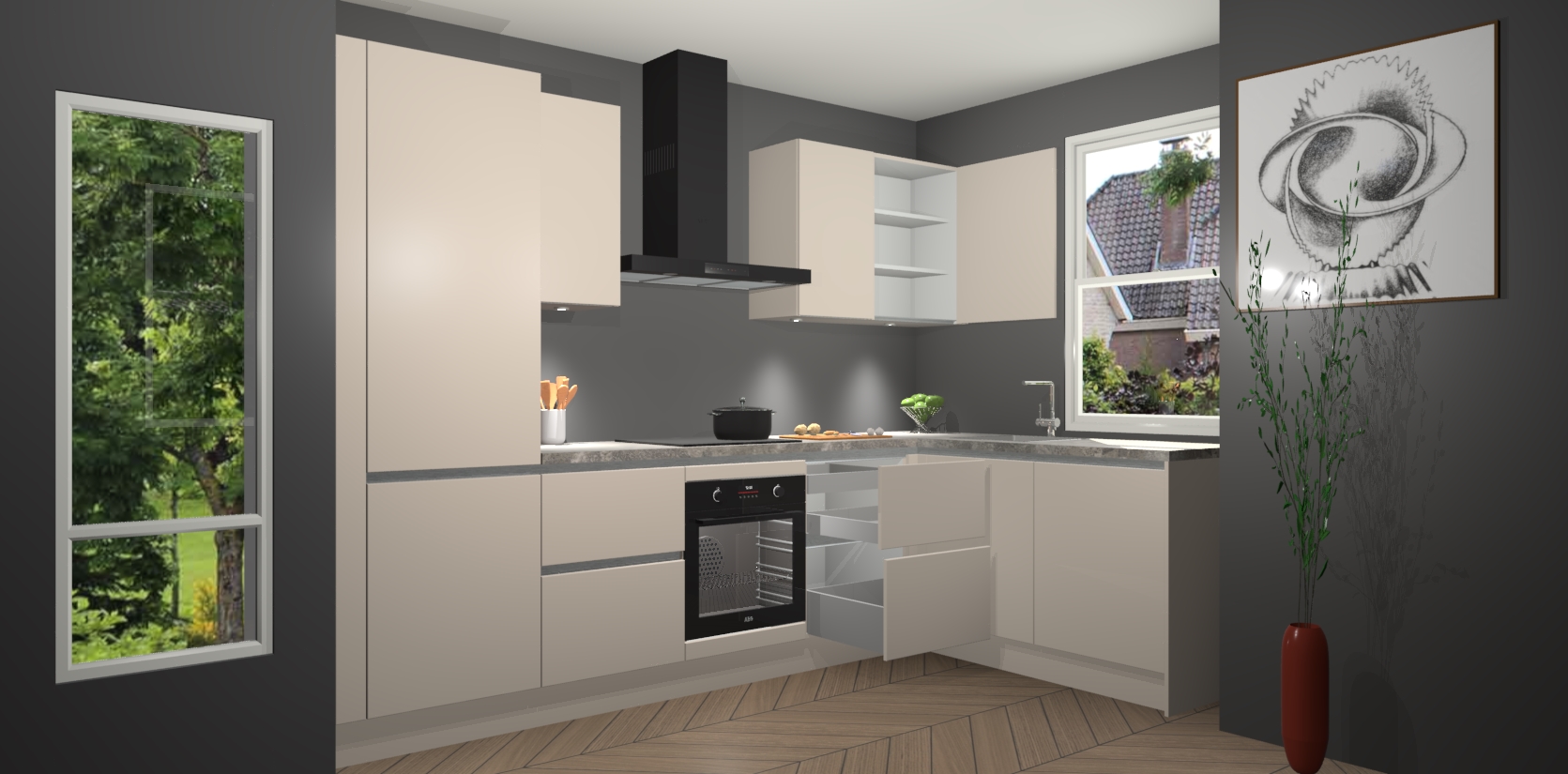 De kasjmier greeploze keuken Geneve is precies wat u nodig heeft als u op zoek bent naar modern design, versmolten met tijdloze schoonheid. De strakke afwerking voegt klasse toe terwijl het toch een uitnodigende sfeer behoudt; zeker om zowel gasten als uzelf te inspireren om in stijl te gaan koken! En nog beter, het zal uw budget niet breken - dus waarom wachten? Met de kasjmier greeploze keuken Geneve bent u verzekerd van kwaliteit zonder in te leveren op de prijs!