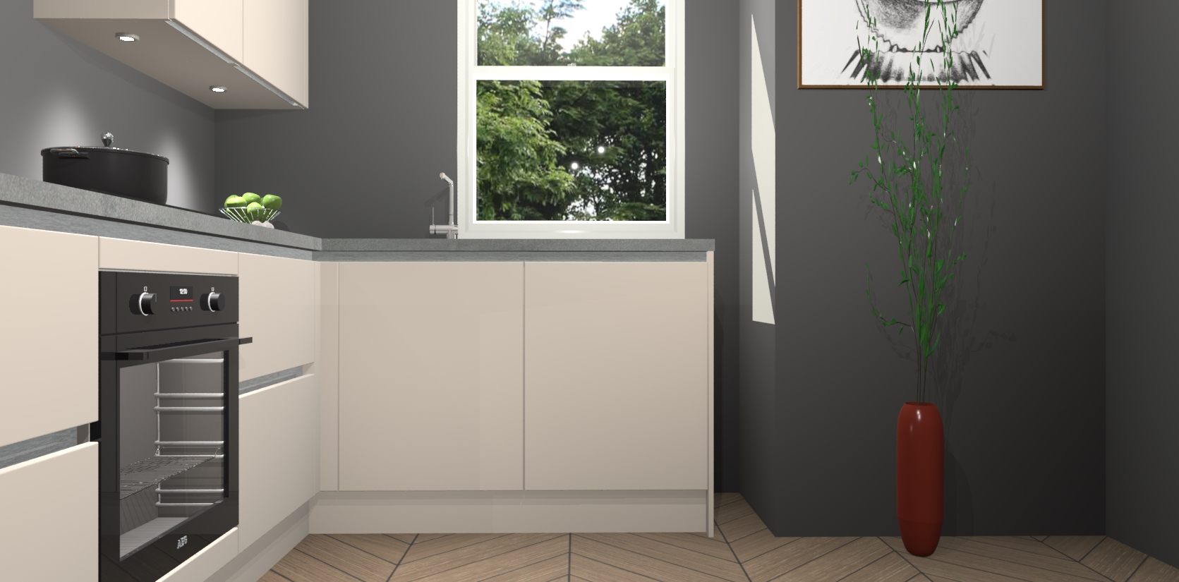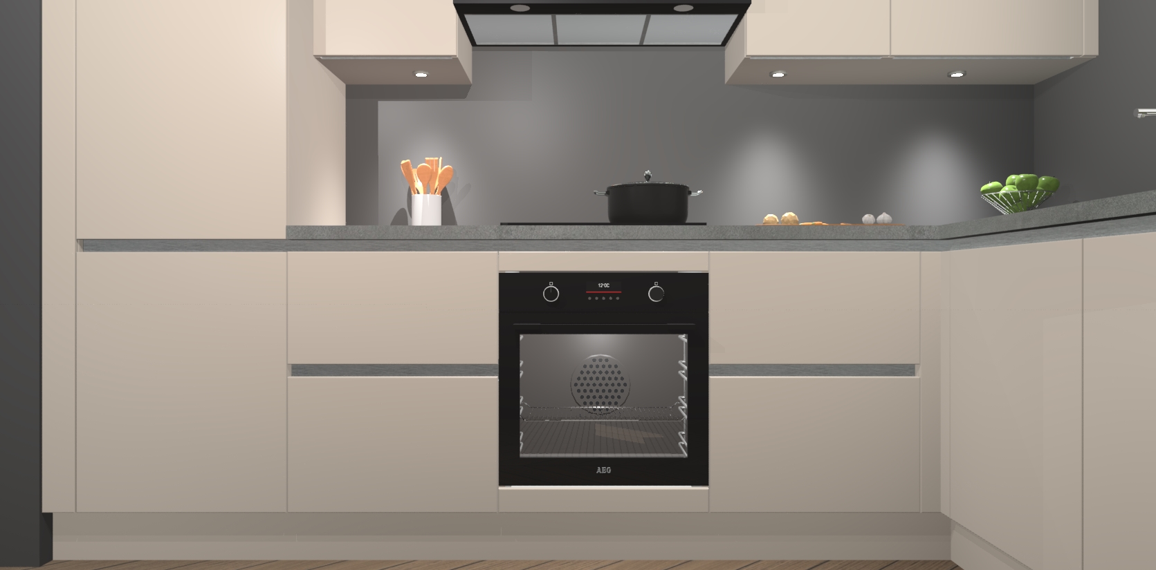 De kasjmier greeploze keuken Geneve is uitgerust met 5 inbouwapparaten - een oven, inductiekookplaat, afzuigkap, vaatwasser en koelkast - voor al uw kook- en bewaarbehoeftes. U kunt deze apparaten desgewenst eenvoudig upgraden naar AEG of de oven omruilen voor een combimagnetron na het plaatsen van uw bestelling. En met de soft close deuren, voldoende opbergruimte en kasten die voorgemonteerd worden geleverd, bent u in een mum van tijd klaar om heerlijke maaltijden te bereiden!