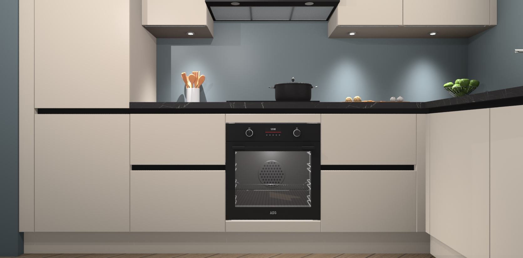 De kasjmier greeploze keuken Geneve is uitgerust met 5 inbouwapparaten - een oven, inductiekookplaat, afzuigkap, vaatwasser en koelkast - voor al uw kook- en bewaarbehoeftes. U kunt deze apparaten desgewenst eenvoudig upgraden naar AEG of de oven omruilen voor een combimagnetron na het plaatsen van uw bestelling. En met de soft close deuren, voldoende opbergruimte en kasten die voorgemonteerd worden geleverd, bent u in een mum van tijd klaar om heerlijke maaltijden te bereiden!