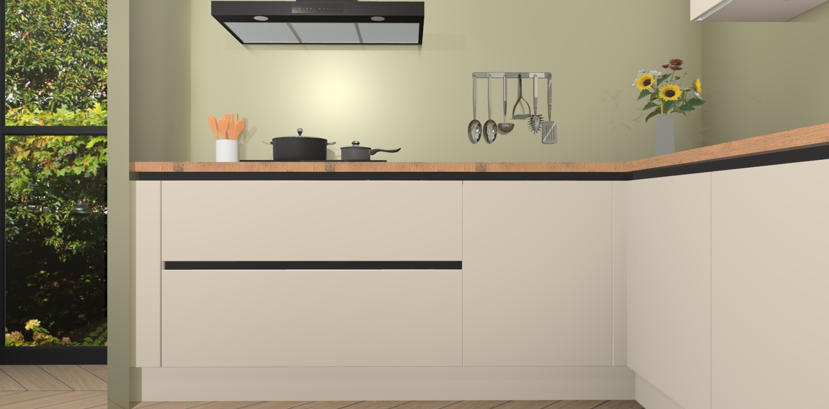 In deze box zijn alle kleuren verzameld van de deuren en werkbladen. Vraag de gratis kleurenbox aan en kijk thuis rustig verder!