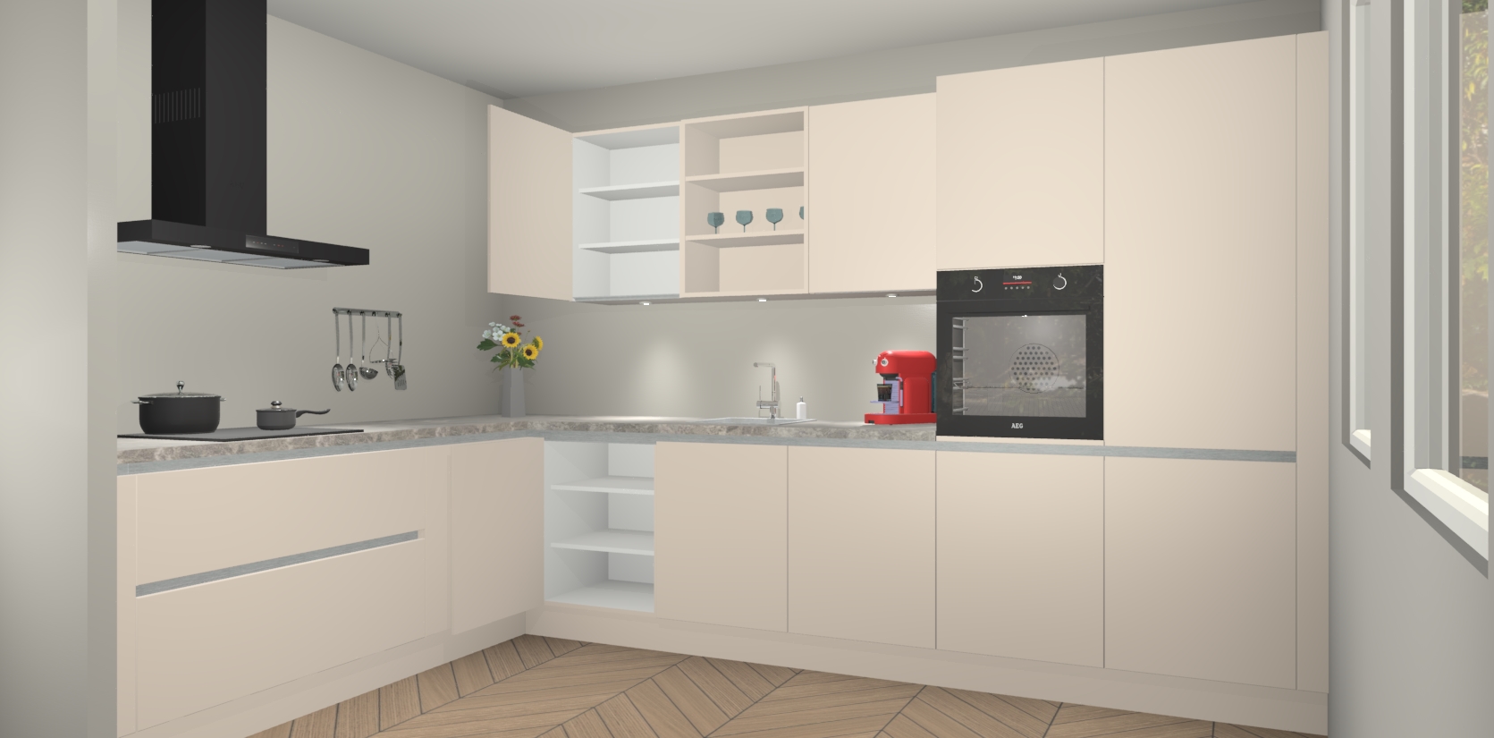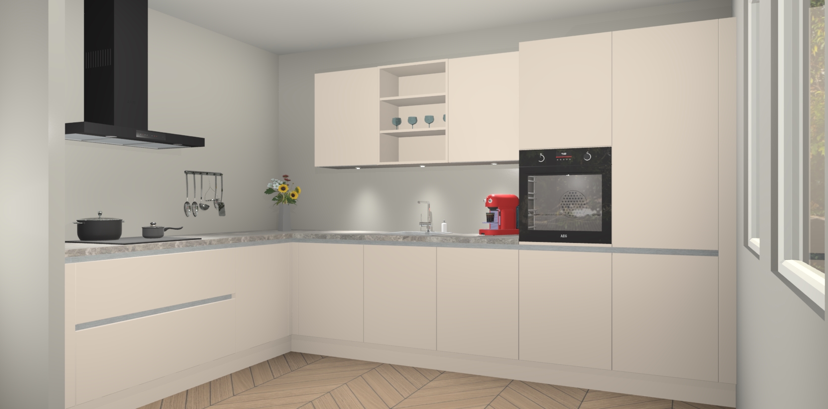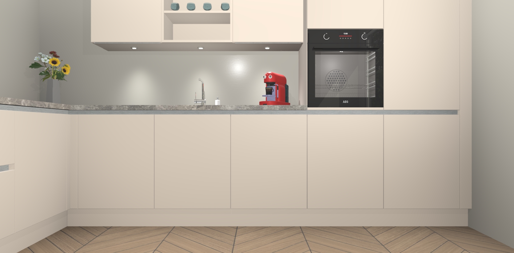 Inclusief plinten, stelpoten en werkblad