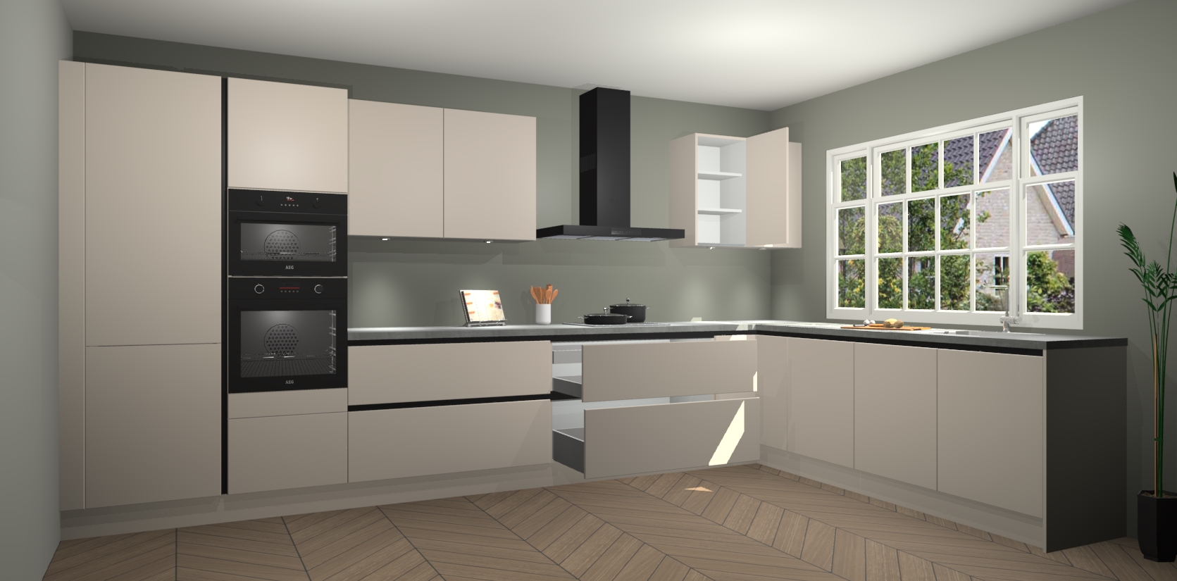 Kom dichtbij de perfecte keuken van uw dromen met de kasjmier greeploze keuken Graz. Met een prachtige houtlook en eigentijds ontwerp, straalt deze keuken warmte en sfeer uit. Of u nu liefhebber bent van traditionele of moderne stijlen, er is genoeg ruimte om aan al uw behoeften te voldoen.