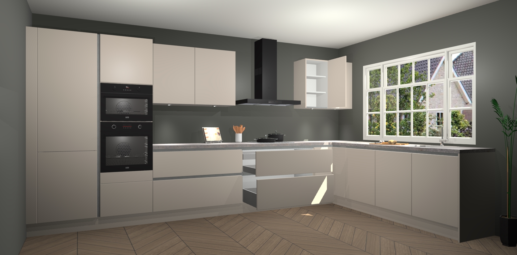 Kom dichtbij de perfecte keuken van uw dromen met de kasjmier greeploze keuken Graz. Met een prachtige houtlook en eigentijds ontwerp, straalt deze keuken warmte en sfeer uit. Of u nu liefhebber bent van traditionele of moderne stijlen, er is genoeg ruimte om aan al uw behoeften te voldoen.