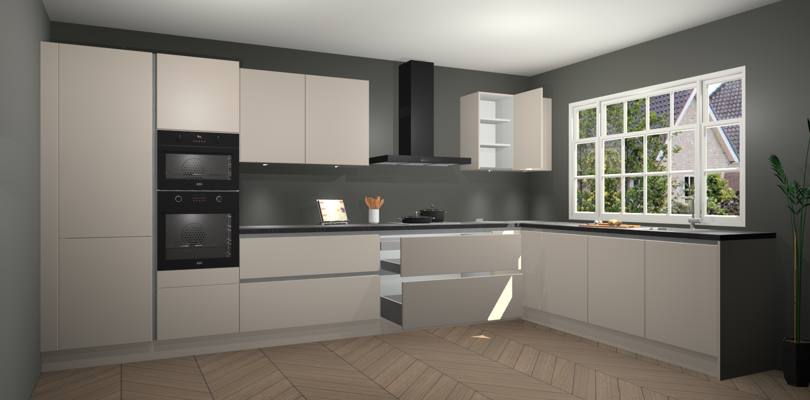 Kom dichtbij de perfecte keuken van uw dromen met de kasjmier greeploze keuken Graz. Met een prachtige houtlook en eigentijds ontwerp, straalt deze keuken warmte en sfeer uit. Of u nu liefhebber bent van traditionele of moderne stijlen, er is genoeg ruimte om aan al uw behoeften te voldoen.