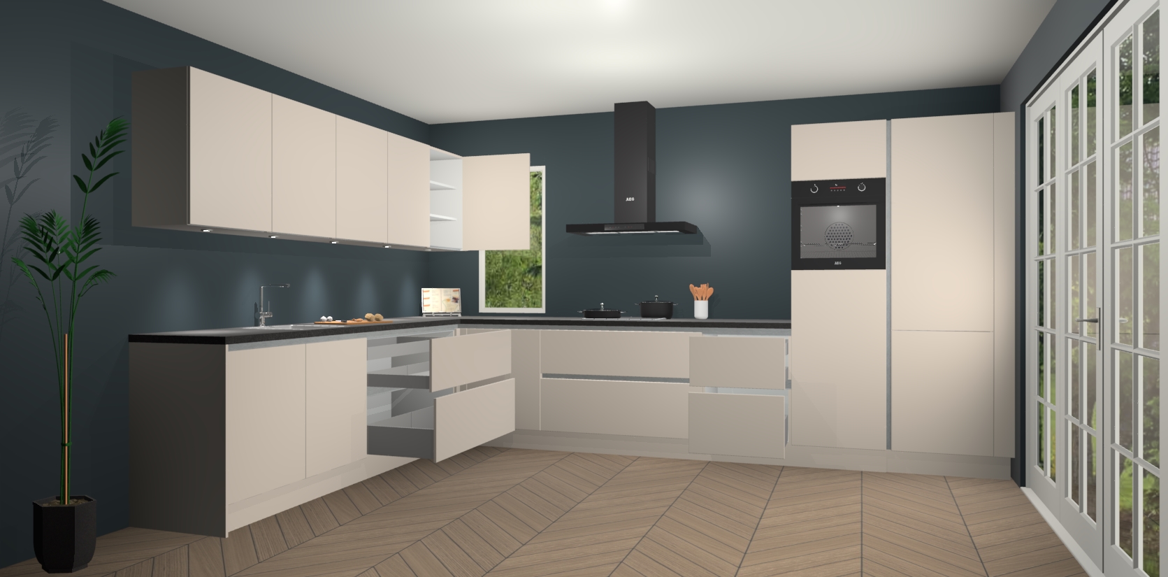 Heeft u nog apparatuur nodig? Geen probleem: de kasjmier greeploze keuken Harare bevat vijf ingebouwde apparaten - een oven, inductiekookplaat, afzuigkap, vaatwasser en koelkast - die gemakkelijk kunnen worden bijgewerkt naar AEG na bestelling. En als dat nog niet genoeg is; onze kasten worden pre-geassembleerd geleverd en zijn verkrijgbaar tegen een vastgeroeste lage prijs! U hoeft nooit meer te zoeken naar goede kwaliteit en service want onze producten hebben echt Duitse kwaliteit.