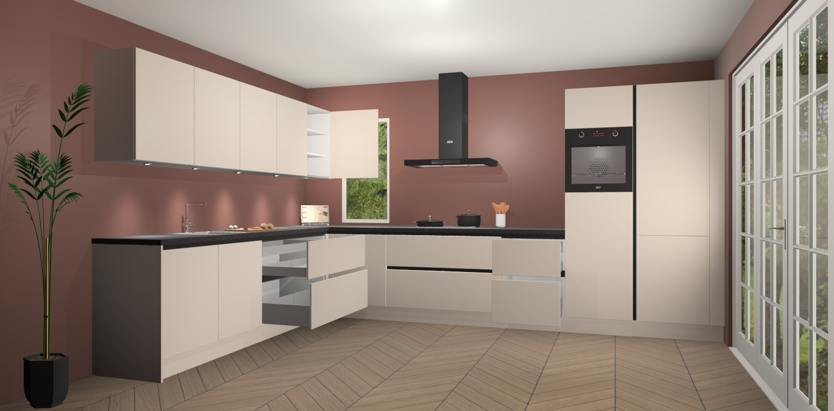 Heeft u nog apparatuur nodig? Geen probleem: de kasjmier greeploze keuken Harare bevat vijf ingebouwde apparaten - een oven, inductiekookplaat, afzuigkap, vaatwasser en koelkast - die gemakkelijk kunnen worden bijgewerkt naar AEG na bestelling. En als dat nog niet genoeg is; onze kasten worden pre-geassembleerd geleverd en zijn verkrijgbaar tegen een vastgeroeste lage prijs! U hoeft nooit meer te zoeken naar goede kwaliteit en service want onze producten hebben echt Duitse kwaliteit.