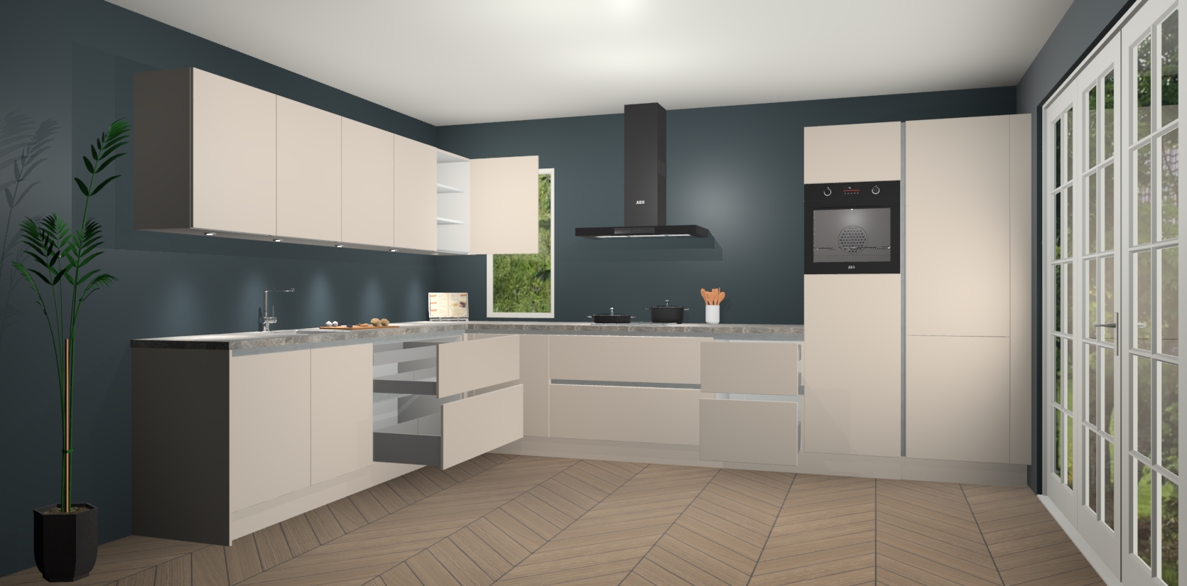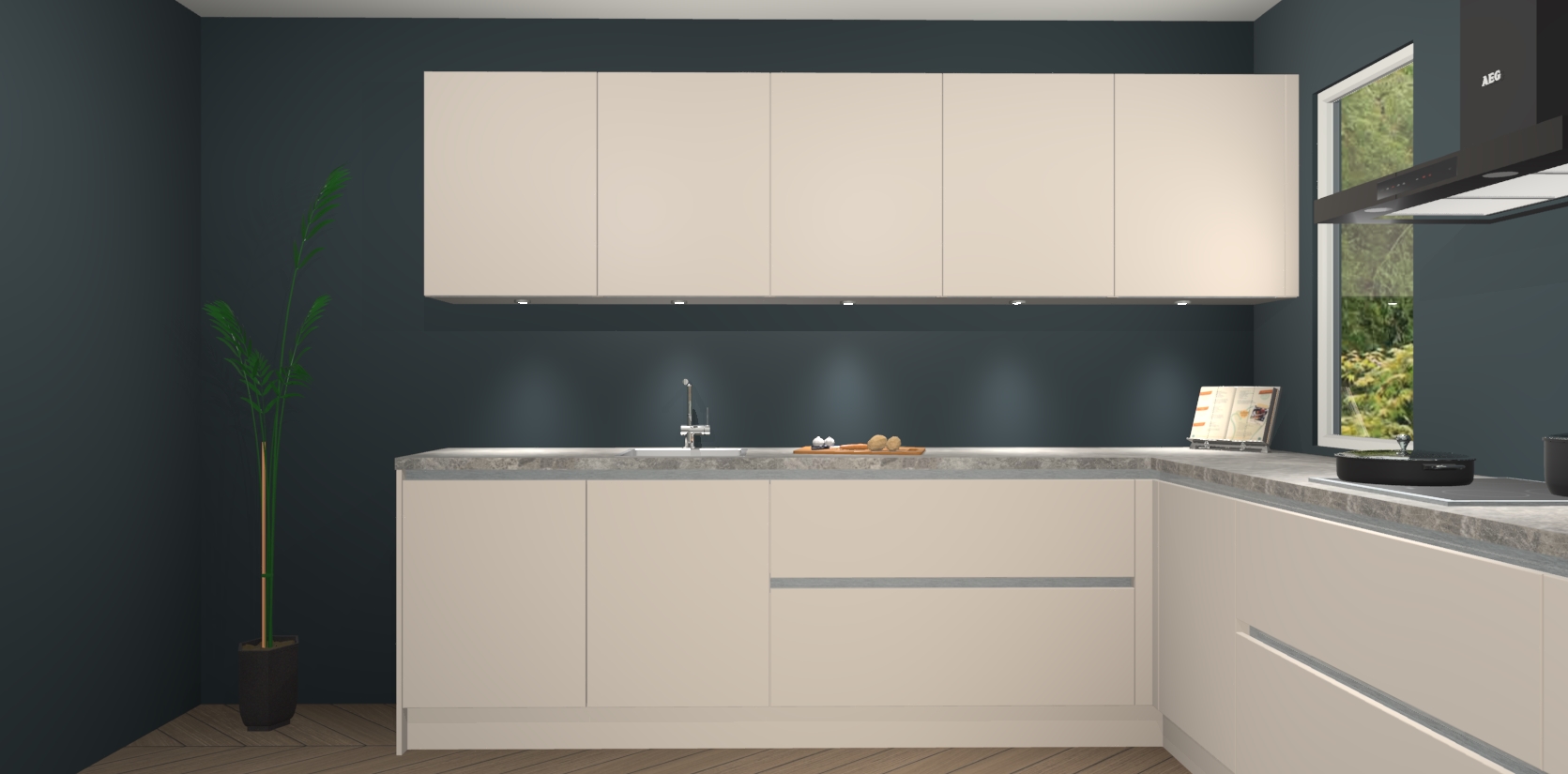 Heeft u nog apparatuur nodig? Geen probleem: de kasjmier greeploze keuken Harare bevat vijf ingebouwde apparaten - een oven, inductiekookplaat, afzuigkap, vaatwasser en koelkast - die gemakkelijk kunnen worden bijgewerkt naar AEG na bestelling. En als dat nog niet genoeg is; onze kasten worden pre-geassembleerd geleverd en zijn verkrijgbaar tegen een vastgeroeste lage prijs! U hoeft nooit meer te zoeken naar goede kwaliteit en service want onze producten hebben echt Duitse kwaliteit.