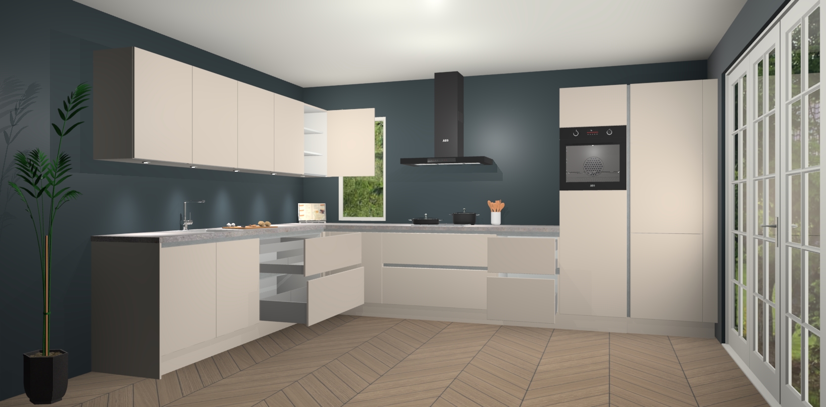 Heeft u nog apparatuur nodig? Geen probleem: de kasjmier greeploze keuken Harare bevat vijf ingebouwde apparaten - een oven, inductiekookplaat, afzuigkap, vaatwasser en koelkast - die gemakkelijk kunnen worden bijgewerkt naar AEG na bestelling. En als dat nog niet genoeg is; onze kasten worden pre-geassembleerd geleverd en zijn verkrijgbaar tegen een vastgeroeste lage prijs! U hoeft nooit meer te zoeken naar goede kwaliteit en service want onze producten hebben echt Duitse kwaliteit.