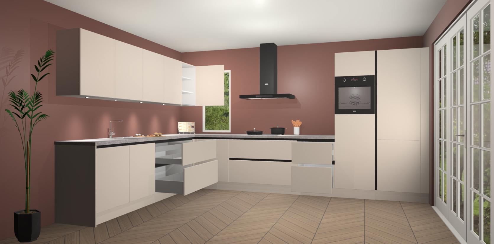 Heeft u nog apparatuur nodig? Geen probleem: de kasjmier greeploze keuken Harare bevat vijf ingebouwde apparaten - een oven, inductiekookplaat, afzuigkap, vaatwasser en koelkast - die gemakkelijk kunnen worden bijgewerkt naar AEG na bestelling. En als dat nog niet genoeg is; onze kasten worden pre-geassembleerd geleverd en zijn verkrijgbaar tegen een vastgeroeste lage prijs! U hoeft nooit meer te zoeken naar goede kwaliteit en service want onze producten hebben echt Duitse kwaliteit.
