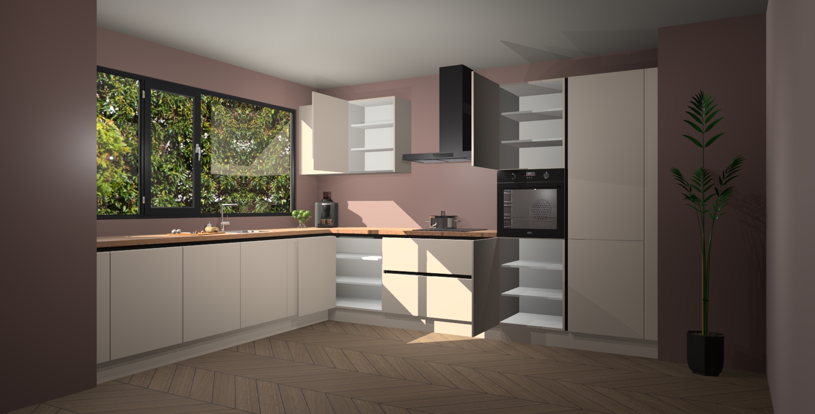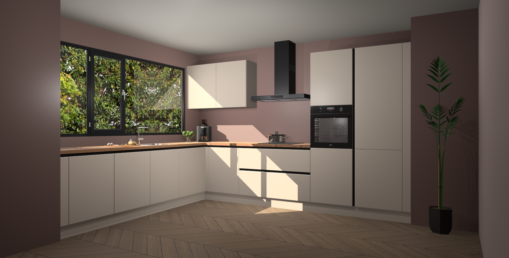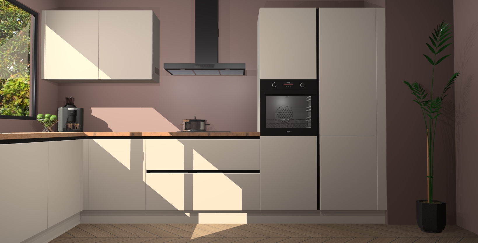 Met een modern, tijdloos design en ruime opslagruimte, zult u zich in no-time thuis voelen in uw nieuwe keuken. Uw leven wordt eenvoudiger met de soft-close deuren die voor het ultieme stille comfort zorgen - geen geluid dat u stoort terwijl u kookt. Ook is de keuken voorzien van 5 ingebouwde apparaten: een oven, inductie kookplaat, afzuigkap, vaatwasser en koelkast. Deze kunnen gemakkelijk na bestelling worden bijgewerkt naar AEG - waardoor uw luxe ervaring compleet is.