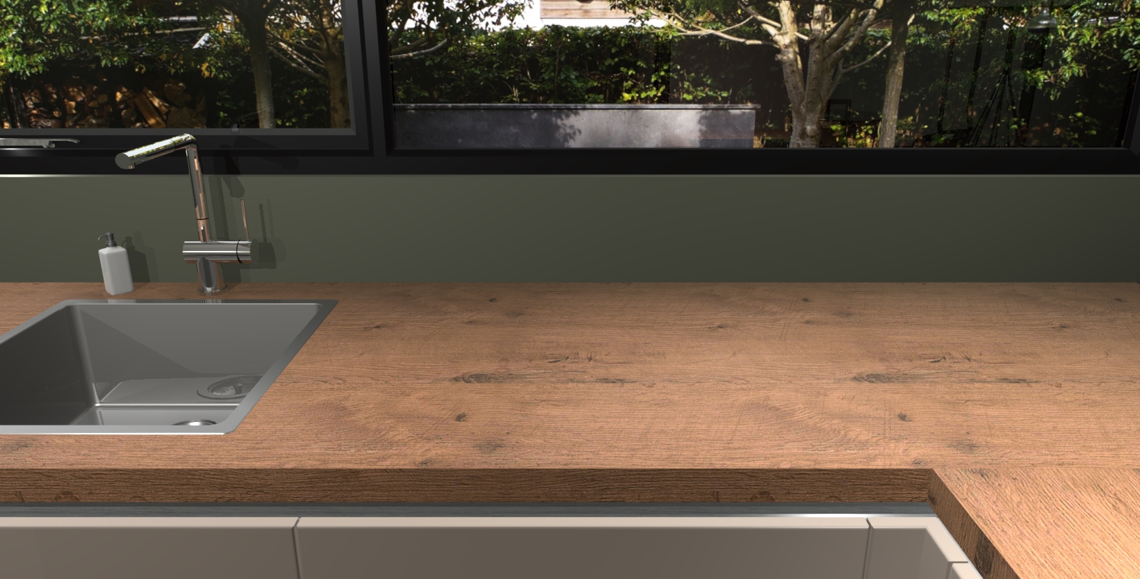 - Bij een hoekwerkblad zijn de hoeken in gevreesd en op maat gemaakt