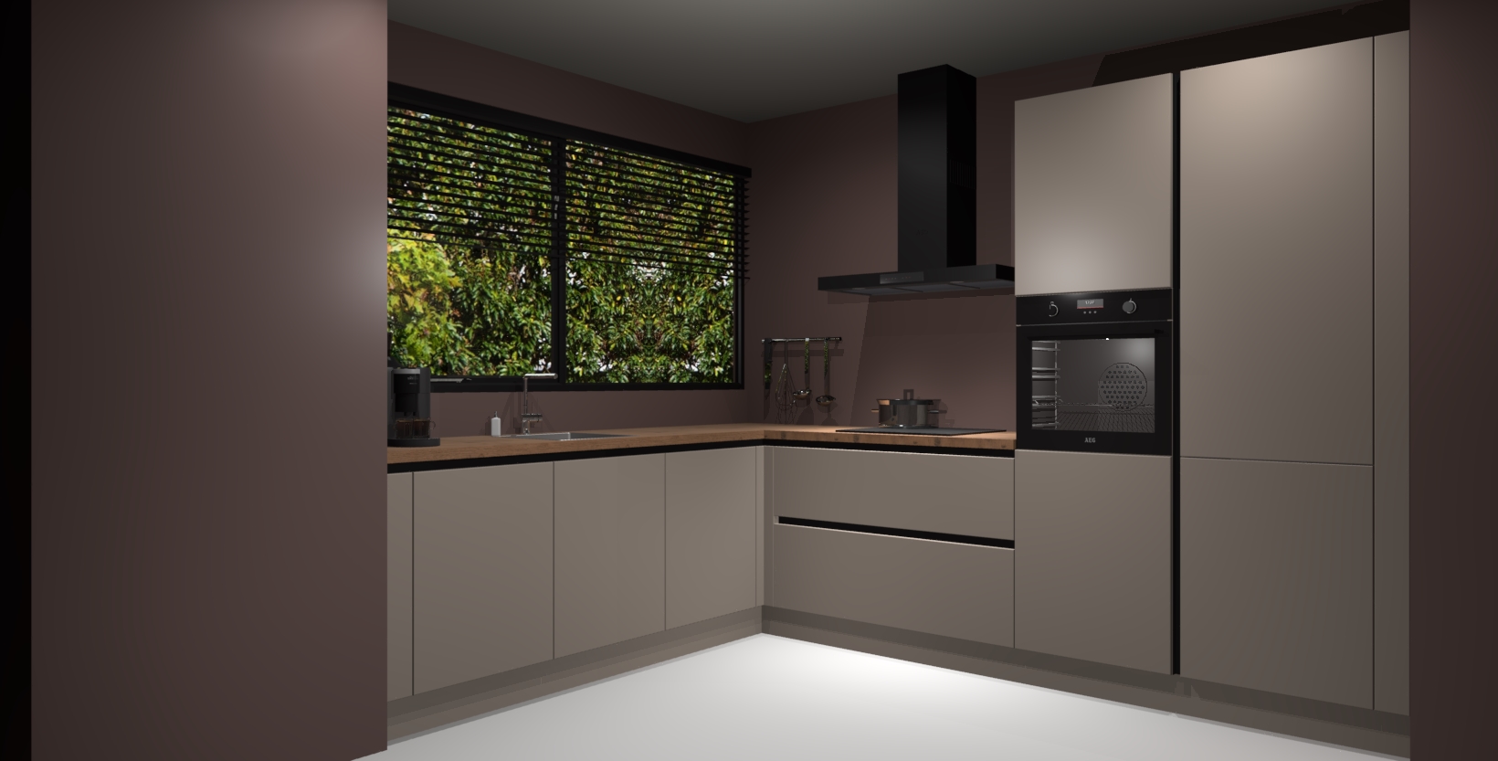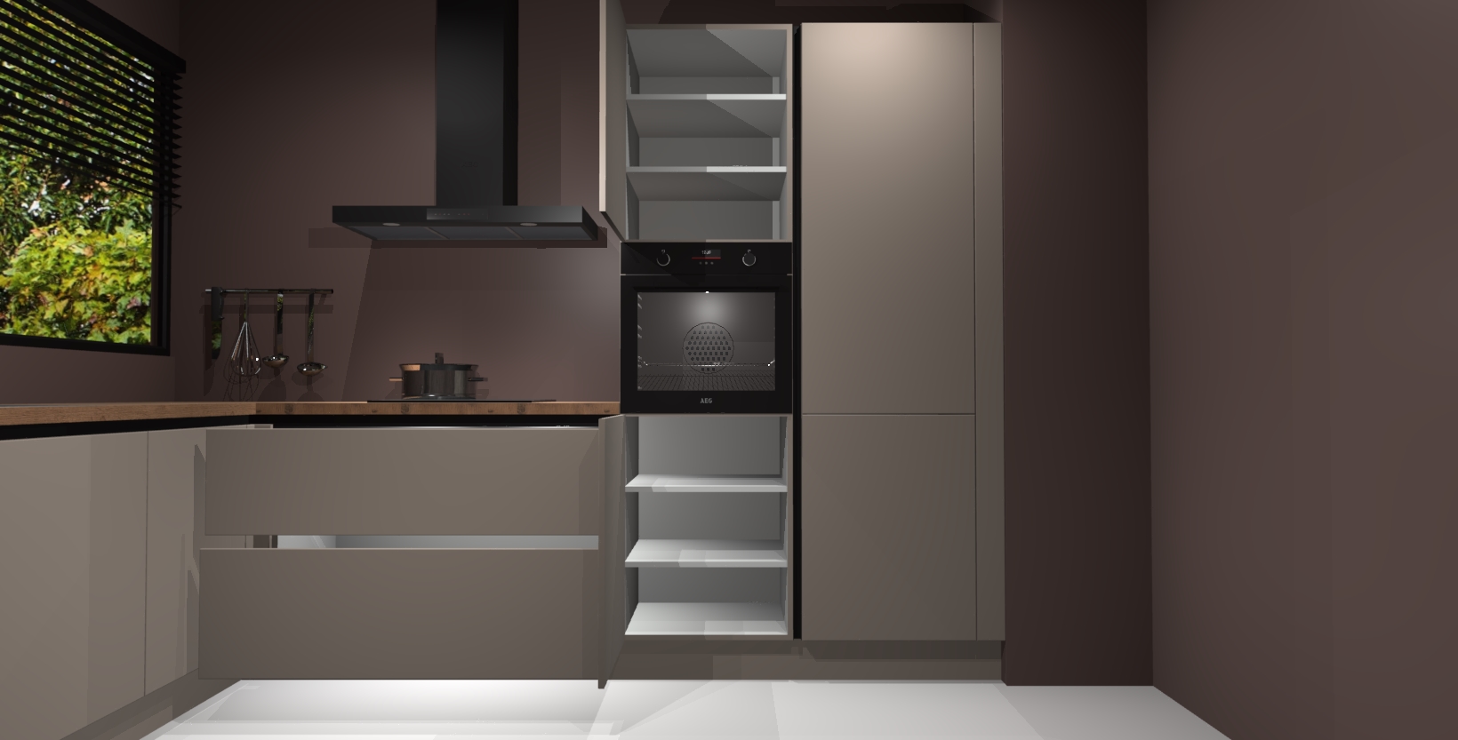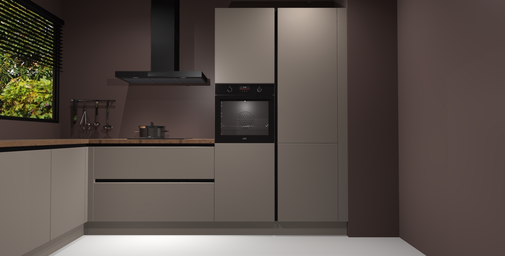 Met een modern, tijdloos design en ruime opslagruimte, zult u zich in no-time thuis voelen in uw nieuwe keuken. Uw leven wordt eenvoudiger met de soft-close deuren die voor het ultieme stille comfort zorgen - geen geluid dat u stoort terwijl u kookt. Ook is de keuken voorzien van 5 ingebouwde apparaten: een oven, inductie kookplaat, afzuigkap, vaatwasser en koelkast. Deze kunnen gemakkelijk na bestelling worden bijgewerkt naar AEG - waardoor uw luxe ervaring compleet is.