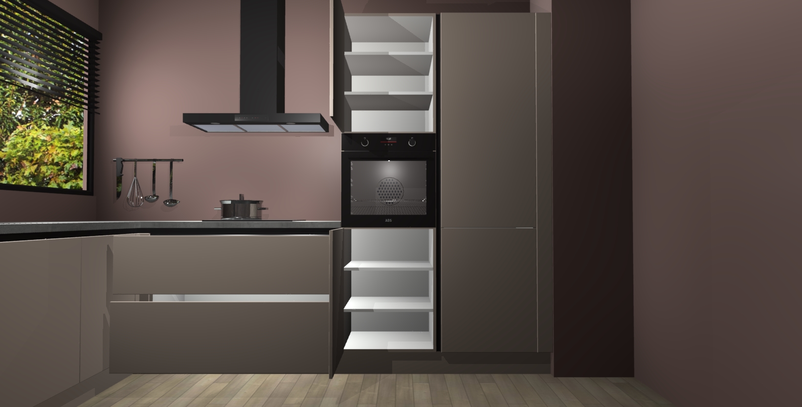 Met een modern, tijdloos design en ruime opslagruimte, zult u zich in no-time thuis voelen in uw nieuwe keuken. Uw leven wordt eenvoudiger met de soft-close deuren die voor het ultieme stille comfort zorgen - geen geluid dat u stoort terwijl u kookt. Ook is de keuken voorzien van 5 ingebouwde apparaten: een oven, inductie kookplaat, afzuigkap, vaatwasser en koelkast. Deze kunnen gemakkelijk na bestelling worden bijgewerkt naar AEG - waardoor uw luxe ervaring compleet is.