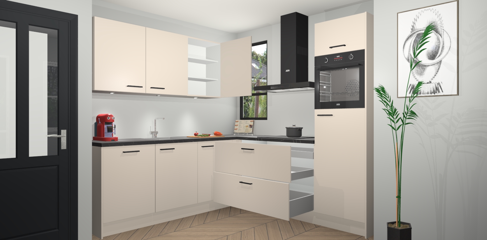Inclusief plinten, stelpoten en werkblad