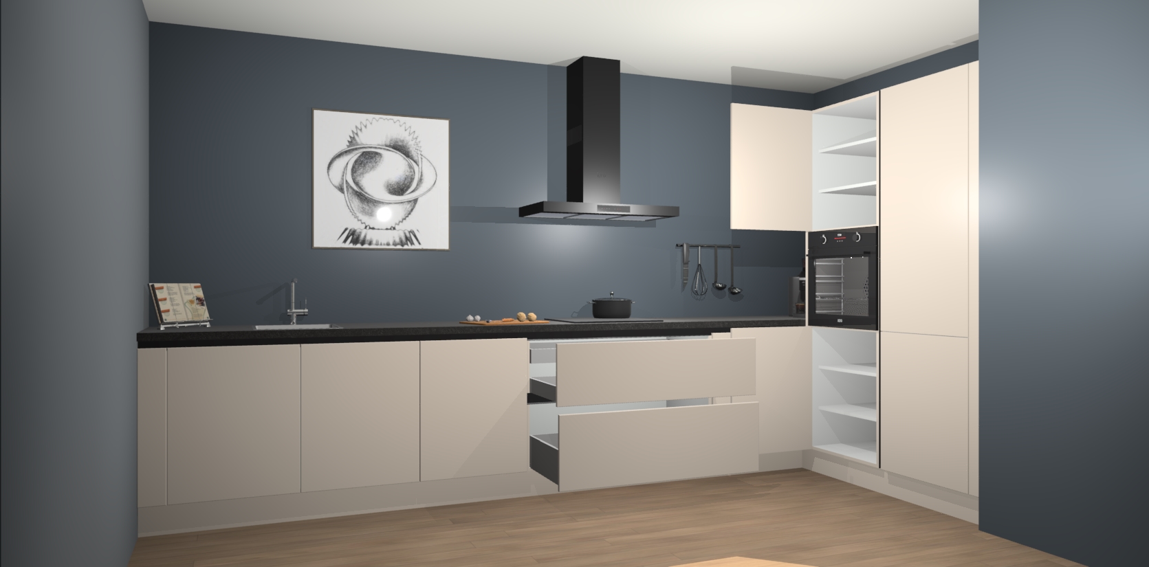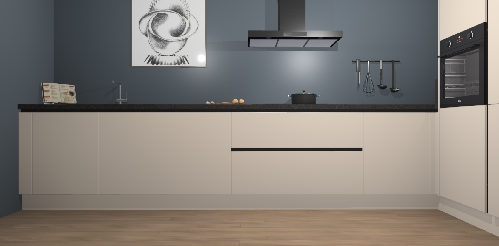 Inclusief plinten, stelpoten en werkblad