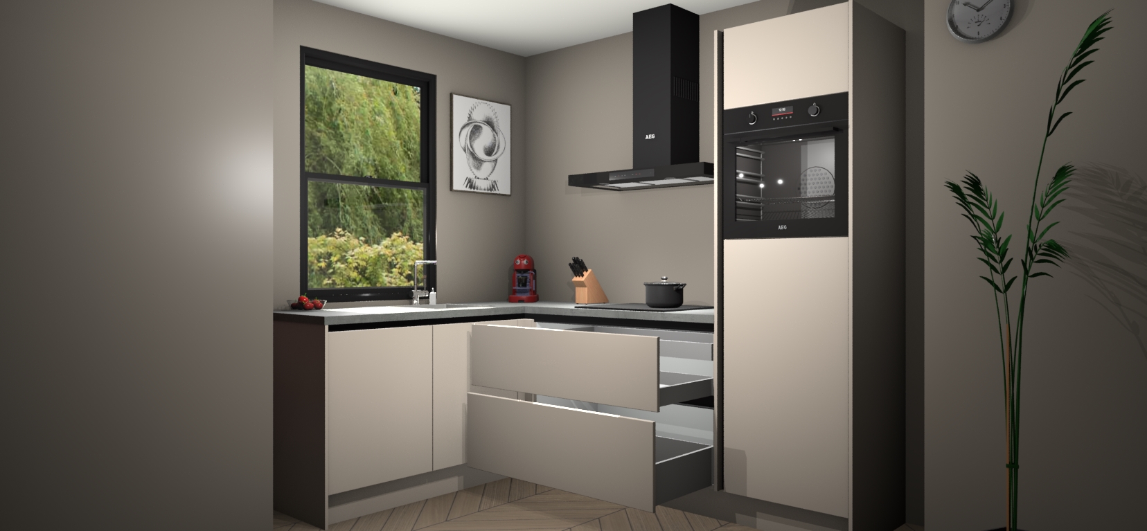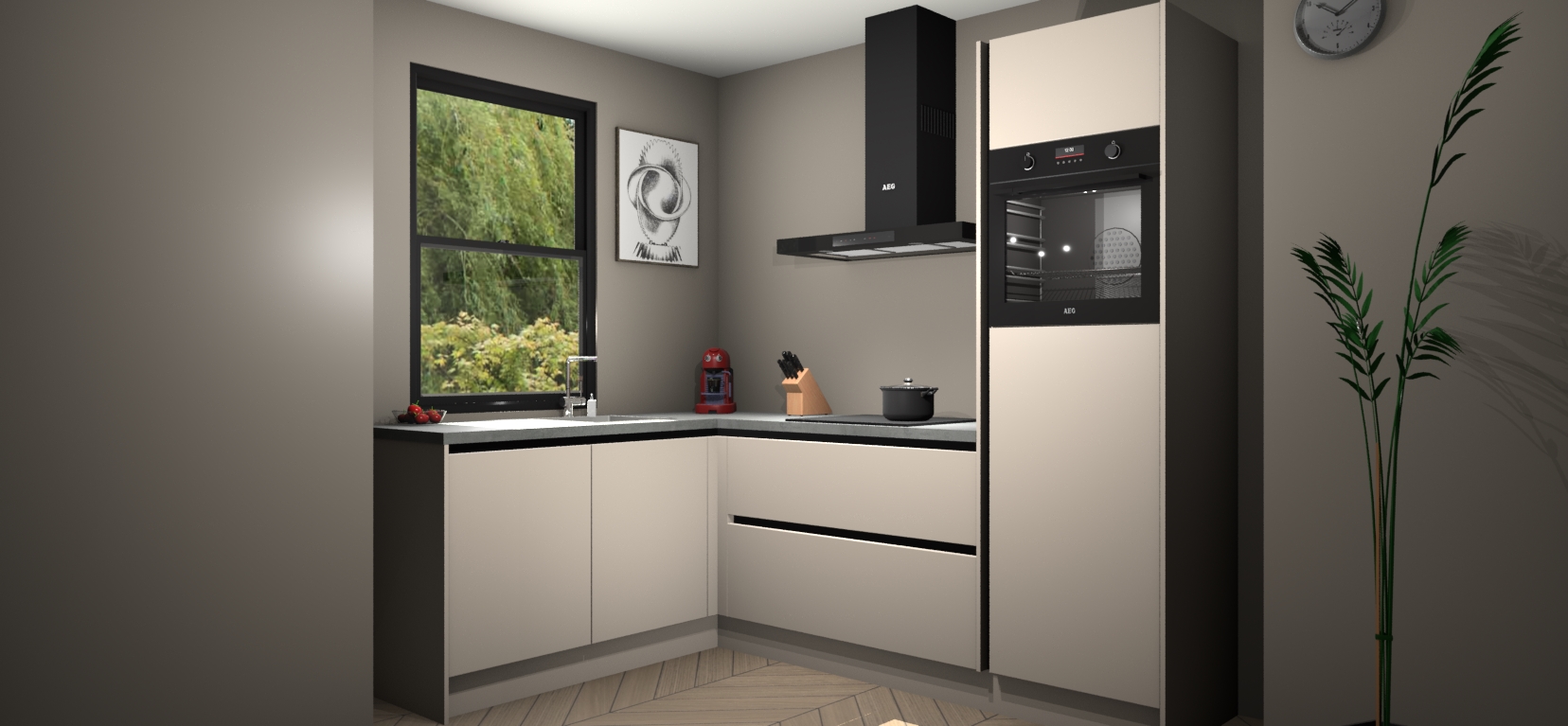 Deze prachtige hoekkeuken heeft alle benodigdheden om uw droomkook- en eetruimte compleet te maken. De Kasjmier kasten bieden een echo van raffinement, terwijl de 5 inbouwapparaten genoeg opties bieden voor het bereiden van heerlijke maaltijden. De oven, inductiekookplaat, afzuigkap, vaatwasser en koelkast zorgen ervoor dat u tijd in de keuken zo efficiënt mogelijk verloopt, terwijl ze ook dat extra vleugje luxe bieden.