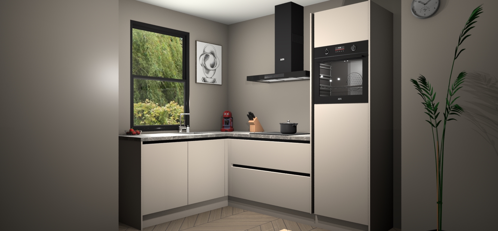 Deze prachtige hoekkeuken heeft alle benodigdheden om uw droomkook- en eetruimte compleet te maken. De Kasjmier kasten bieden een echo van raffinement, terwijl de 5 inbouwapparaten genoeg opties bieden voor het bereiden van heerlijke maaltijden. De oven, inductiekookplaat, afzuigkap, vaatwasser en koelkast zorgen ervoor dat u tijd in de keuken zo efficiënt mogelijk verloopt, terwijl ze ook dat extra vleugje luxe bieden.