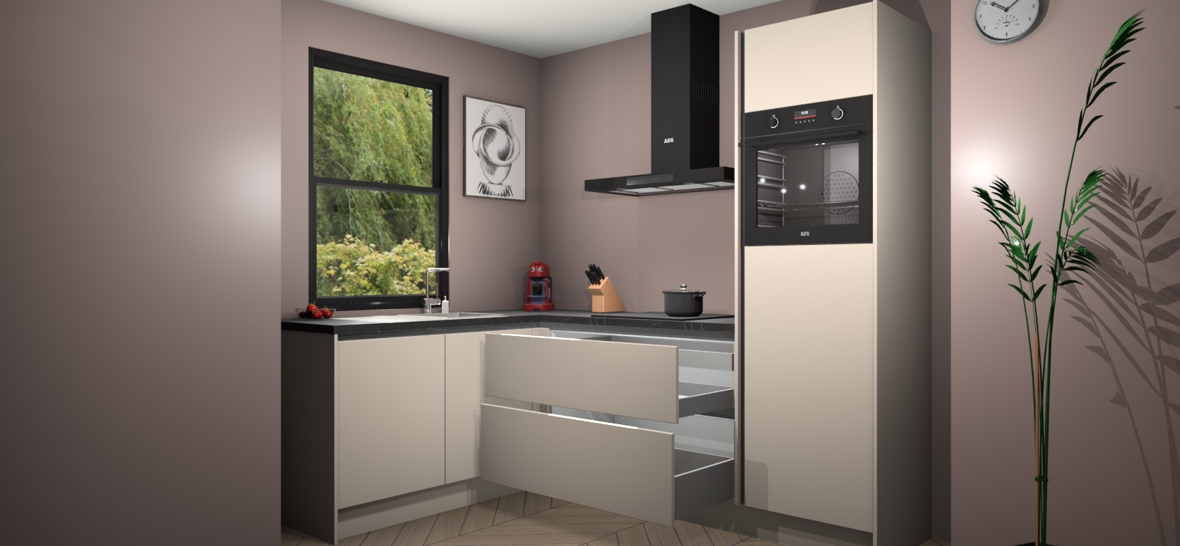 Deze prachtige hoekkeuken heeft alle benodigdheden om uw droomkook- en eetruimte compleet te maken. De Kasjmier kasten bieden een echo van raffinement, terwijl de 5 inbouwapparaten genoeg opties bieden voor het bereiden van heerlijke maaltijden. De oven, inductiekookplaat, afzuigkap, vaatwasser en koelkast zorgen ervoor dat u tijd in de keuken zo efficiënt mogelijk verloopt, terwijl ze ook dat extra vleugje luxe bieden.