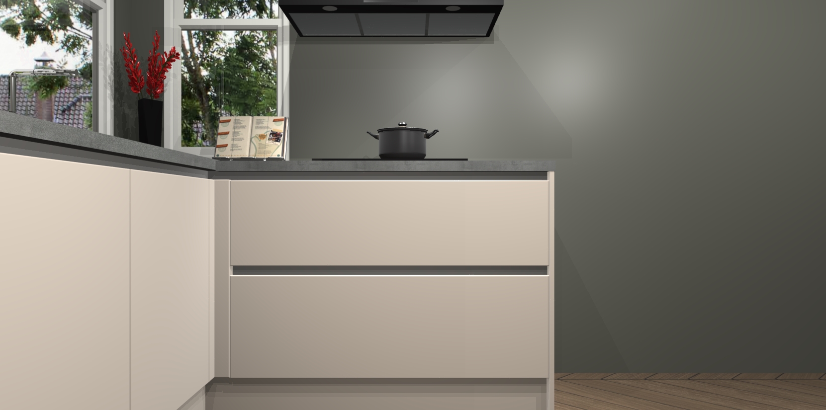 Inclusief plinten, stelpoten en werkblad