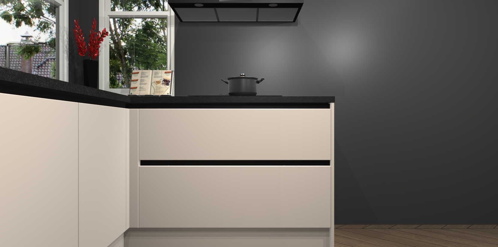 Inclusief plinten, stelpoten en werkblad