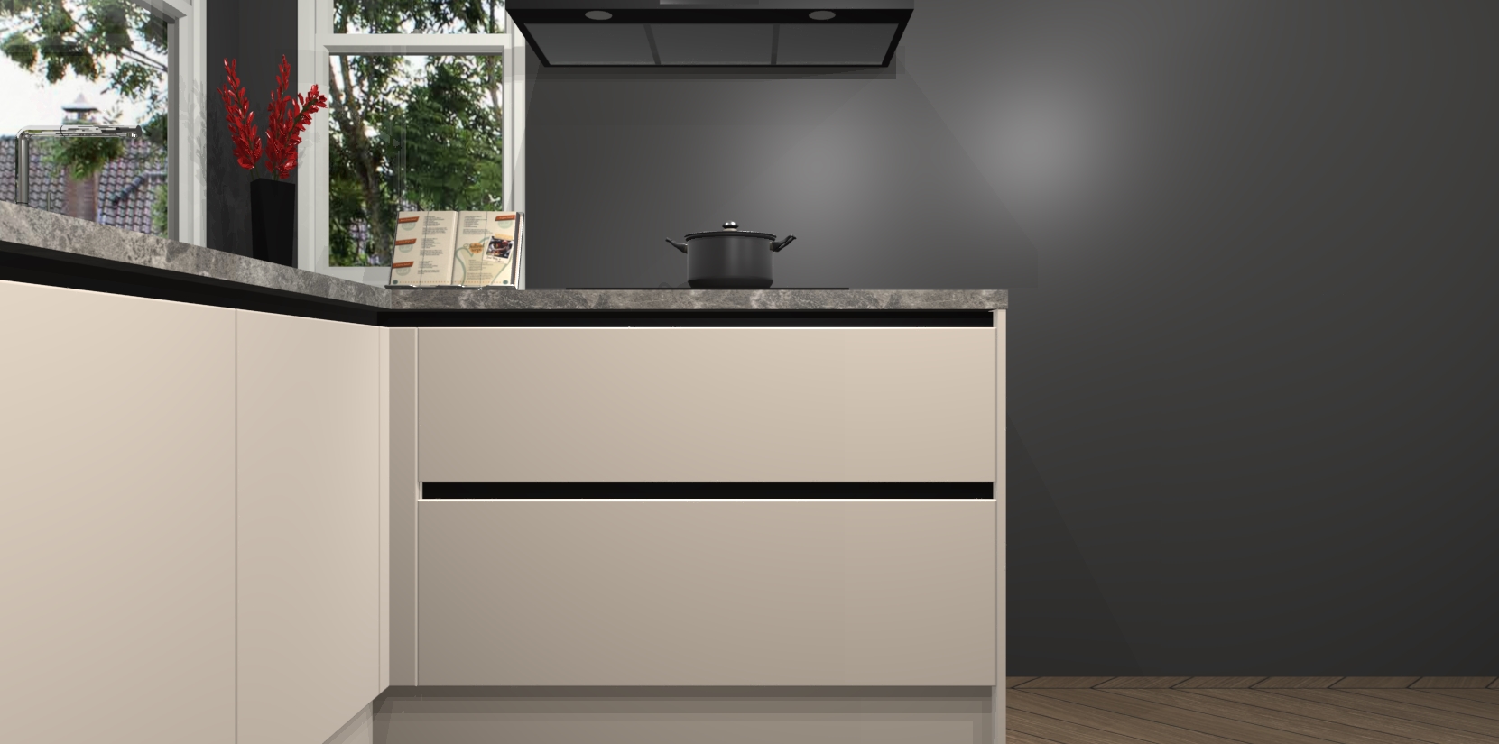 Inclusief plinten, stelpoten en werkblad