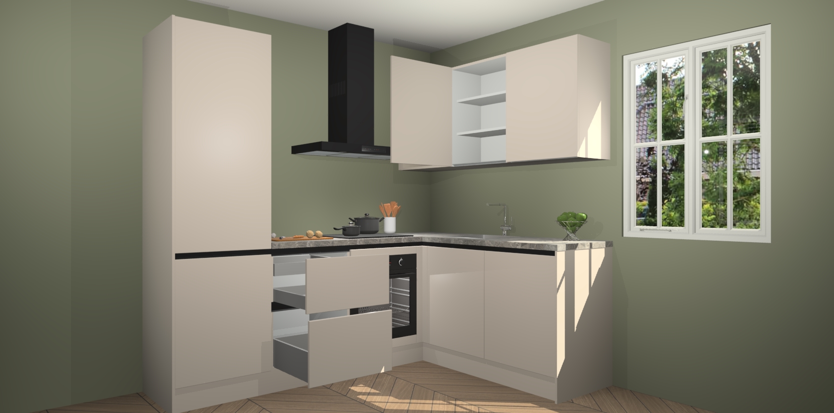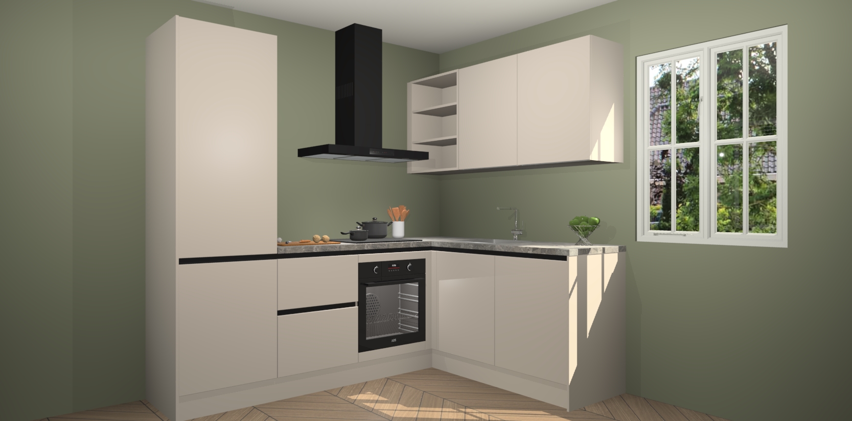 Inclusief plinten, stelpoten en werkblad