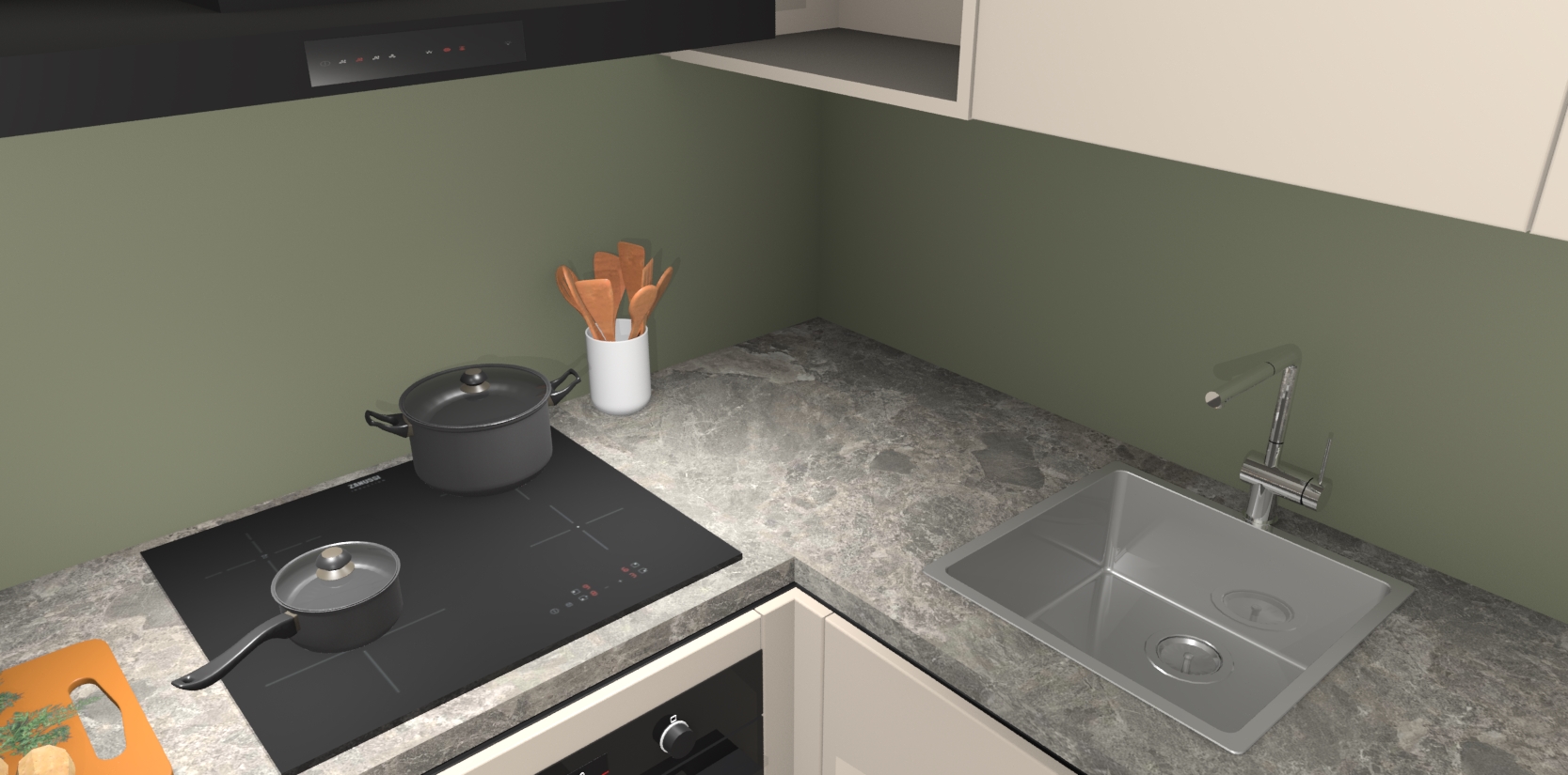 - Uitsparing van kookplaat, spoelbak en kraan dient u zelf te verzorgen.