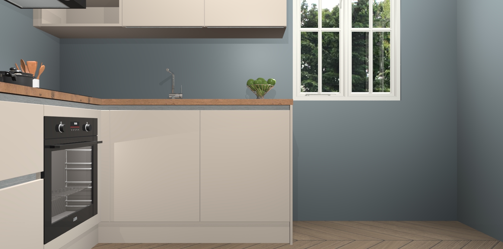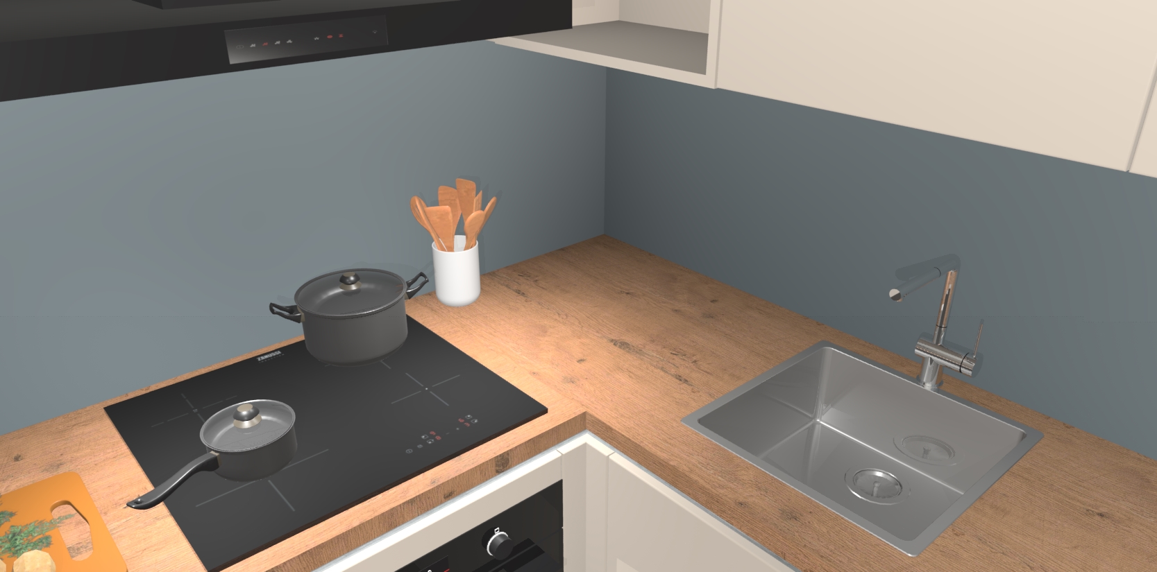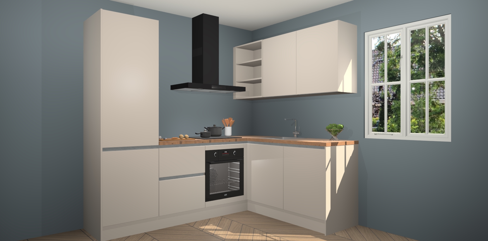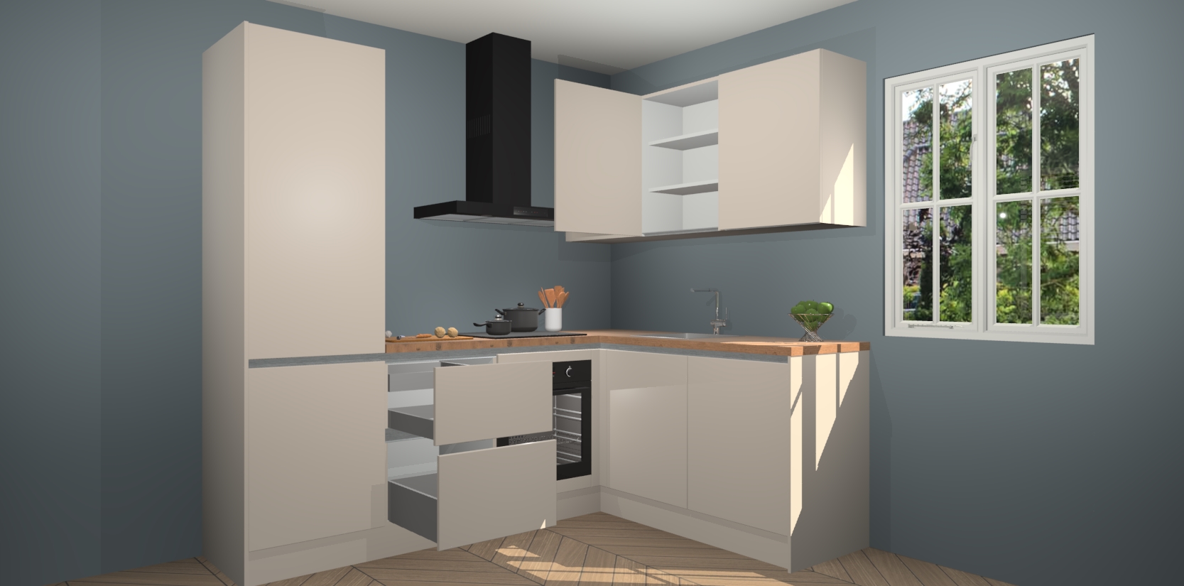 Inclusief plinten, stelpoten en werkblad