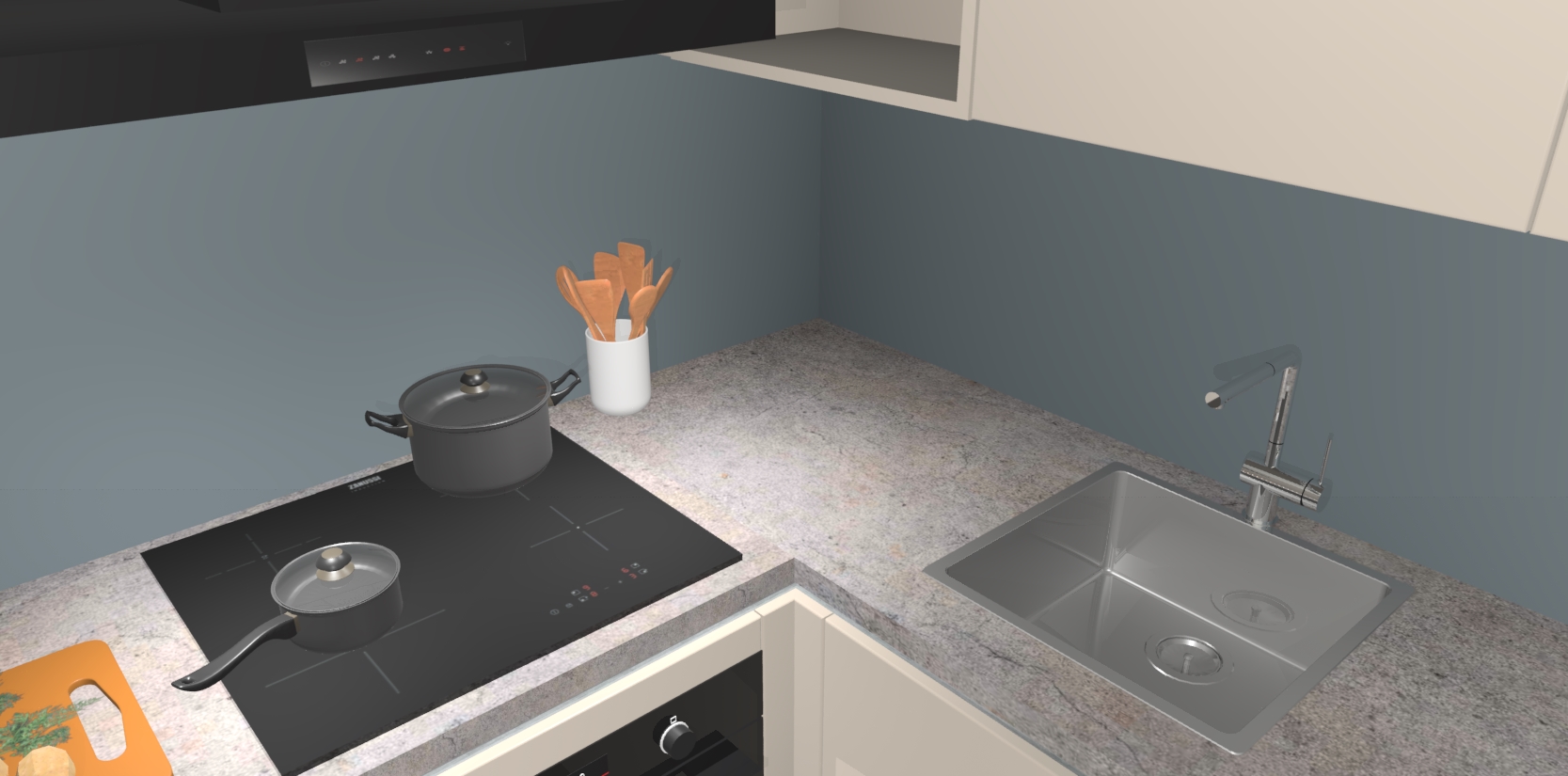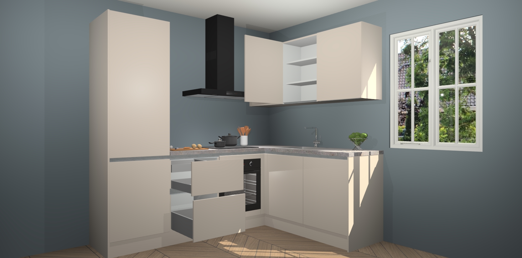 Inclusief plinten, stelpoten en werkblad