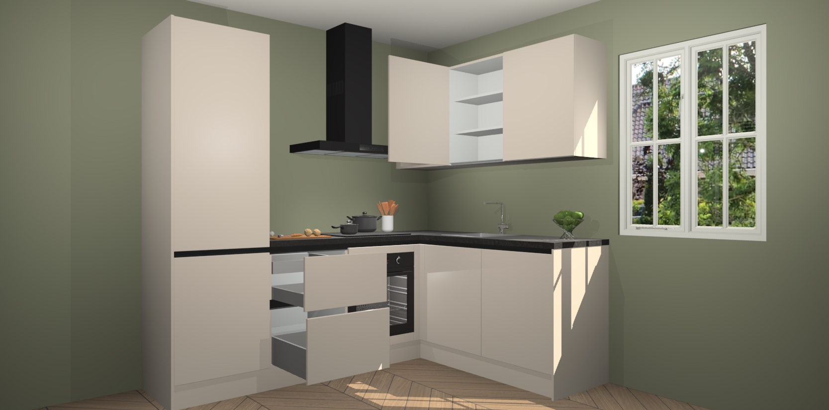 Inclusief plinten, stelpoten en werkblad