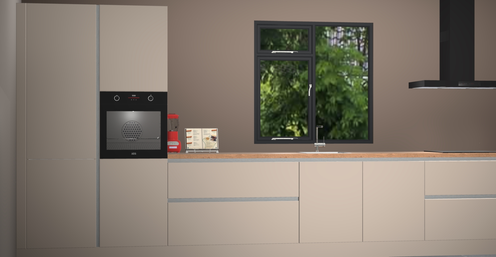 De Kasjmier keuken Lille wordt geleverd met vijf inbouwapparaten - een oven, inductiekookplaat, afzuigkap, vaatwasser en koelkast. Maar dat is nog niet alles! Na bestelling kunnen deze apparaten eenvoudig worden geüpgraded naar premium AEG-apparatuur. Bovendien is er zelfs de optie om de oven te vervangen door een combimagnetron of uw inductiekookplaat te vervangen door een kookplaat met geïntegreerde afzuiging.