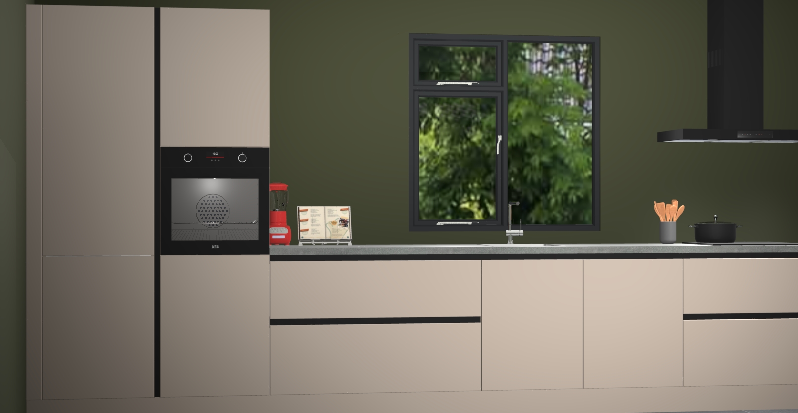 De Kasjmier keuken Lille wordt geleverd met vijf inbouwapparaten - een oven, inductiekookplaat, afzuigkap, vaatwasser en koelkast. Maar dat is nog niet alles! Na bestelling kunnen deze apparaten eenvoudig worden geüpgraded naar premium AEG-apparatuur. Bovendien is er zelfs de optie om de oven te vervangen door een combimagnetron of uw inductiekookplaat te vervangen door een kookplaat met geïntegreerde afzuiging.