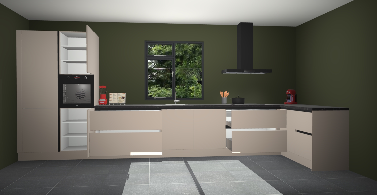 In deze box zijn alle kleuren verzameld van de deuren en werkbladen. Vraag de gratis kleurenbox aan en kijk thuis rustig verder!
