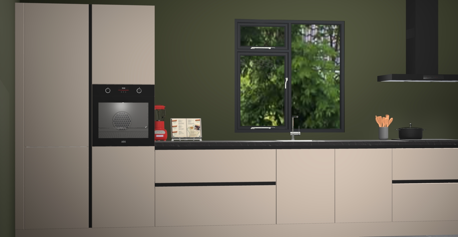 De Kasjmier keuken Lille wordt geleverd met vijf inbouwapparaten - een oven, inductiekookplaat, afzuigkap, vaatwasser en koelkast. Maar dat is nog niet alles! Na bestelling kunnen deze apparaten eenvoudig worden geüpgraded naar premium AEG-apparatuur. Bovendien is er zelfs de optie om de oven te vervangen door een combimagnetron of uw inductiekookplaat te vervangen door een kookplaat met geïntegreerde afzuiging.
