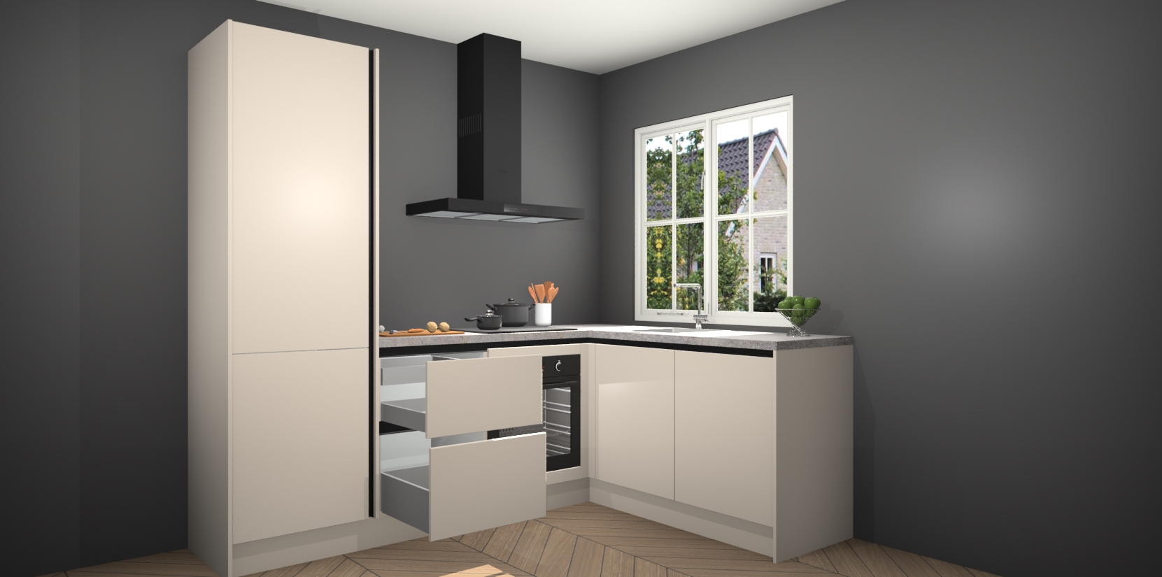 De Kasjmier greeploze keuken Linz is de perfecte keuze voor uw nieuwe moderne en tijdloze keuken. Ga voor moderne en tijdloze elegantie in uw keuken. De prachtige hoekkeuken biedt een verfrissende kijk op de manier waarop we ons vertrouwde keukenontwerp kunnen aanpassen in een nieuwe stijl.  Één blik om alles te zien: zo mooi dat het bijna magisch lijkt.