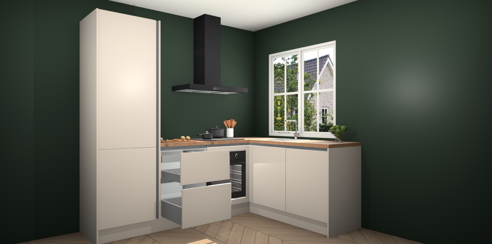 Inclusief plinten, stelpoten en werkblad