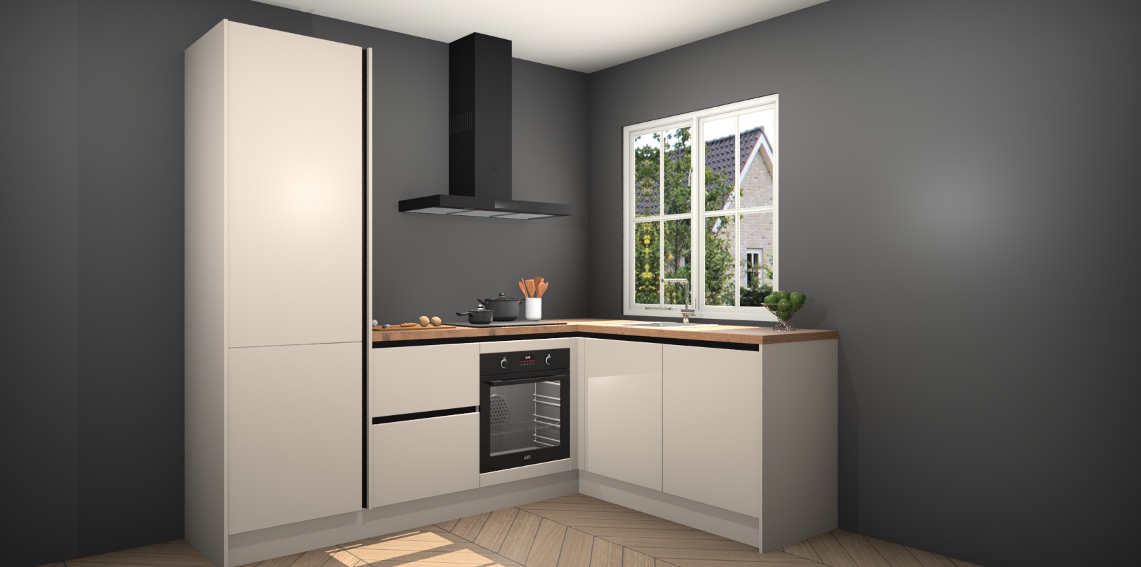 Met de Kasjmier greeploze keuken Linz krijgt u 5 op maat gemaakte apparaten: een oven, inductiekookplaat, afzuigkap, vaatwasser en koelkast die na bestelling makkelijk worden geüpgraded naar AEG-producten. Met de zacht sluitende deuren, bent u verzekerd van eenvoudige bediening in stilte. Het kastmeubilair wordt alvast pre-assemblage geleverd waardoor u sneller met het installeren begint. Ook zijn alle deuren voorzien van softclose zodat er geen sporen op de lade blijven als u ze dicht doet. Bovendien hoeft u bij ons geen twijfels of verassingen te hebben: we hebben een vaste lage prijs waardoor u weet wat u mag verwachten bij elke bestelling.