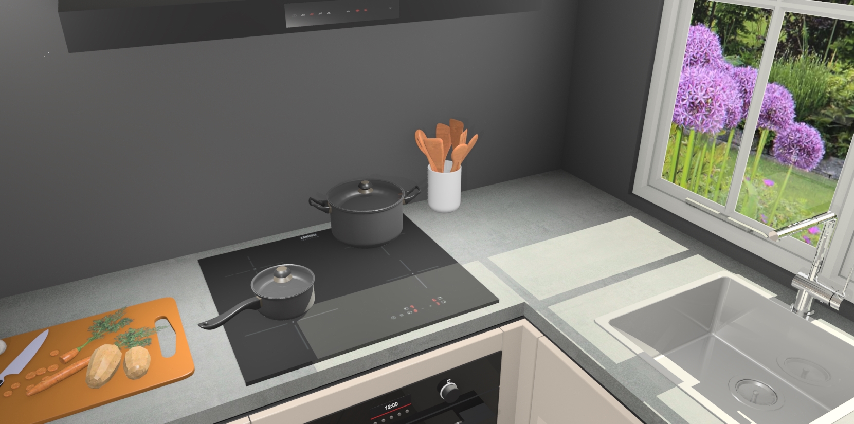 - Uitsparing van kookplaat, spoelbak en kraan dient u zelf te verzorgen.