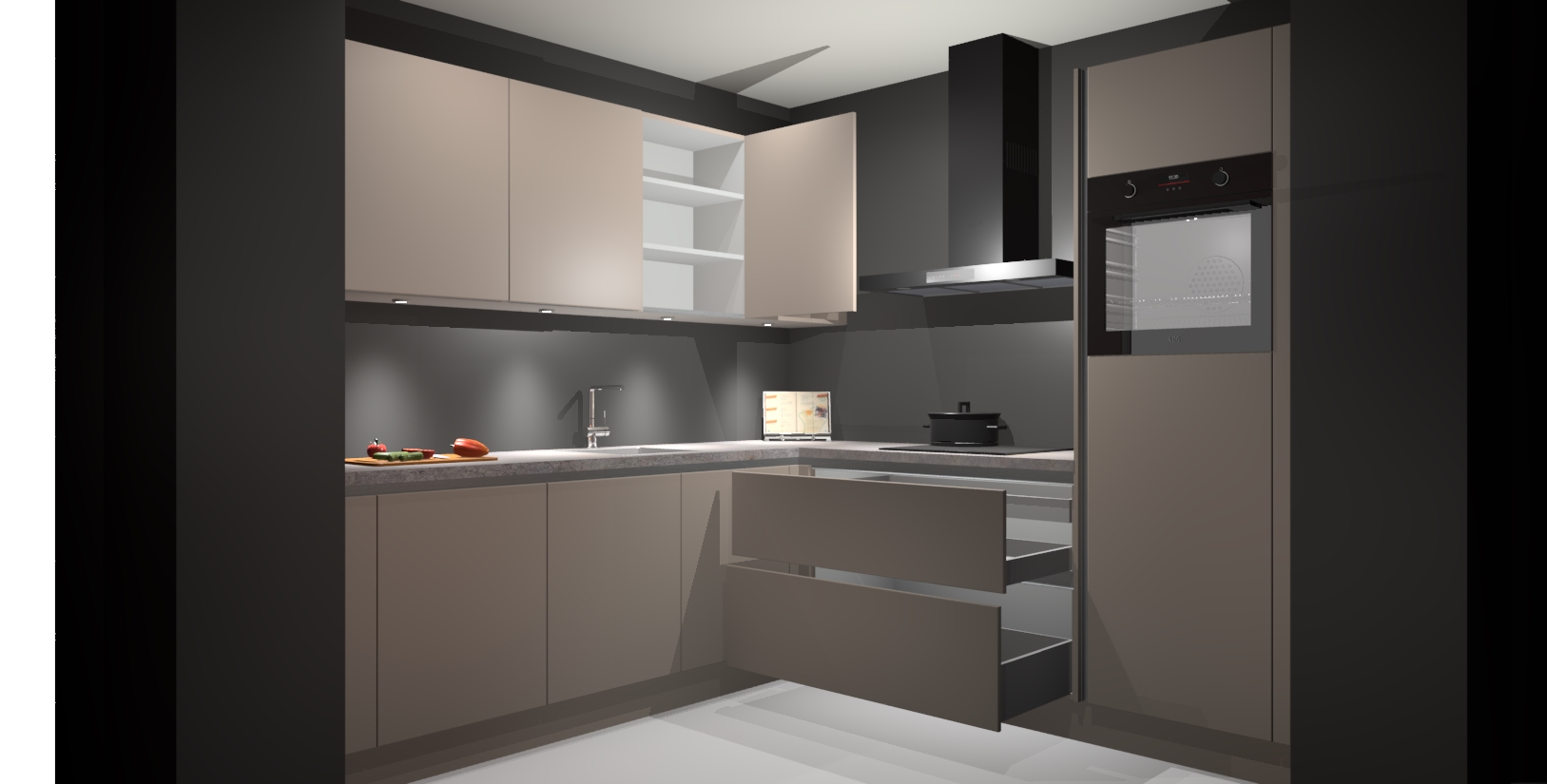 Met een modern, tijdloos design en ruime opslagruimte, zult u zich in no-time thuis voelen in uw nieuwe keuken. Uw leven wordt eenvoudiger met de soft-close deuren die voor het ultieme stille comfort zorgen - geen geluid dat u stoort terwijl u kookt. Ook is de keuken voorzien van 5 ingebouwde apparaten: een oven, inductie kookplaat, afzuigkap, vaatwasser en koelkast. Deze kunnen gemakkelijk na bestelling worden bijgewerkt naar AEG - waardoor uw luxe ervaring compleet is.