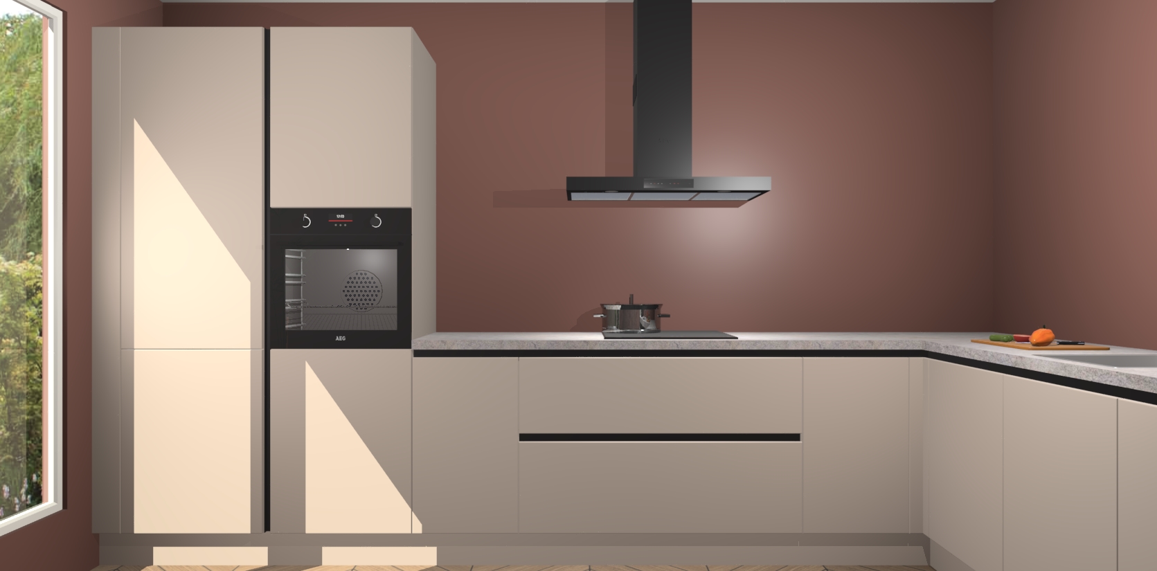 Met een modern, tijdloos design en ruime opslagruimte, zult u zich in no-time thuis voelen in uw nieuwe keuken. Uw leven wordt eenvoudiger met de soft-close deuren die voor het ultieme stille comfort zorgen - geen geluid dat u stoort terwijl u kookt. Ook is de keuken voorzien van 5 ingebouwde apparaten: een oven, inductie kookplaat, afzuigkap, vaatwasser en koelkast. Deze kunnen gemakkelijk na bestelling worden bijgewerkt naar AEG - waardoor uw luxe ervaring compleet is.