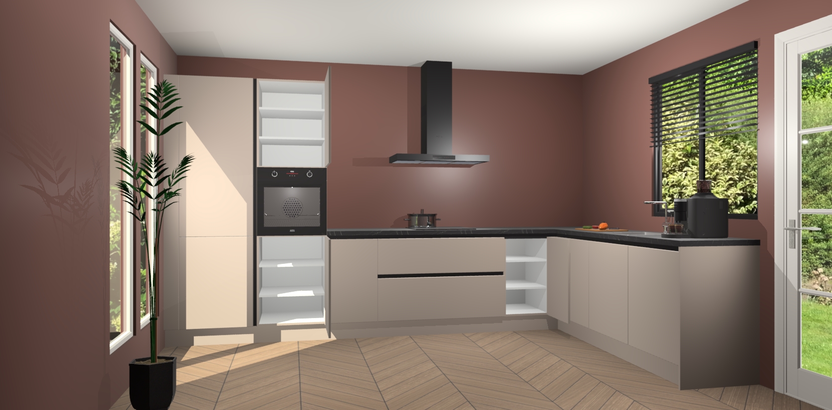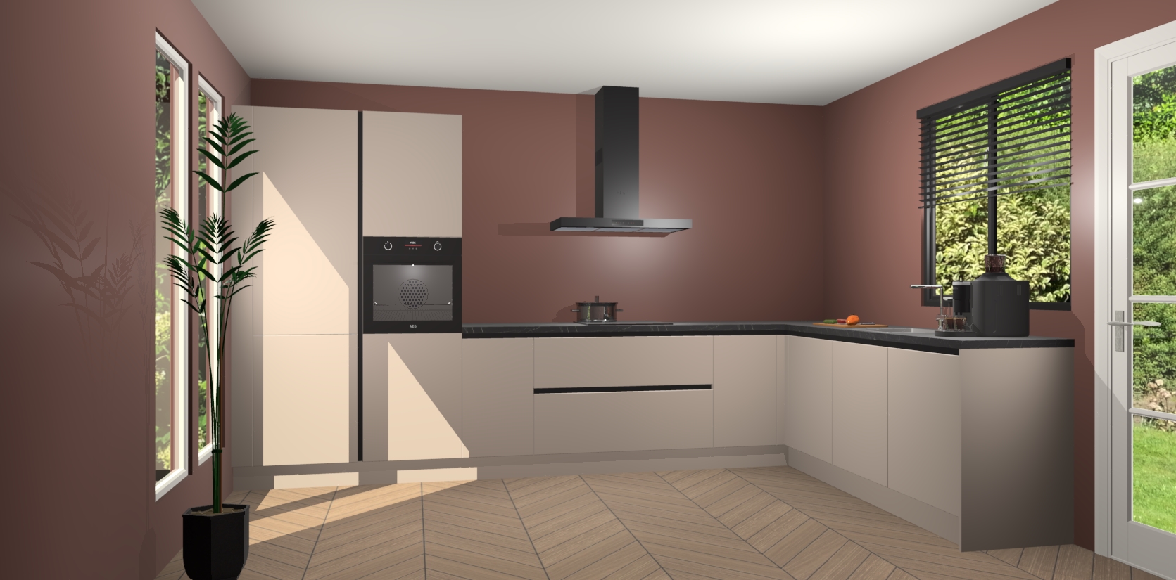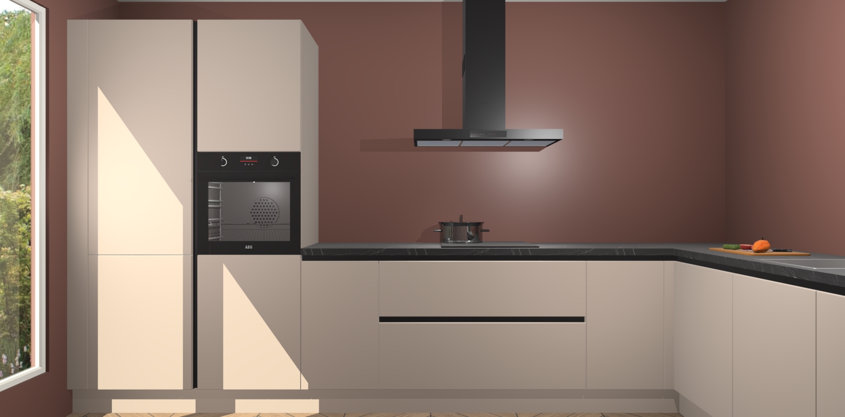 Met een modern, tijdloos design en ruime opslagruimte, zult u zich in no-time thuis voelen in uw nieuwe keuken. Uw leven wordt eenvoudiger met de soft-close deuren die voor het ultieme stille comfort zorgen - geen geluid dat u stoort terwijl u kookt. Ook is de keuken voorzien van 5 ingebouwde apparaten: een oven, inductie kookplaat, afzuigkap, vaatwasser en koelkast. Deze kunnen gemakkelijk na bestelling worden bijgewerkt naar AEG - waardoor uw luxe ervaring compleet is.