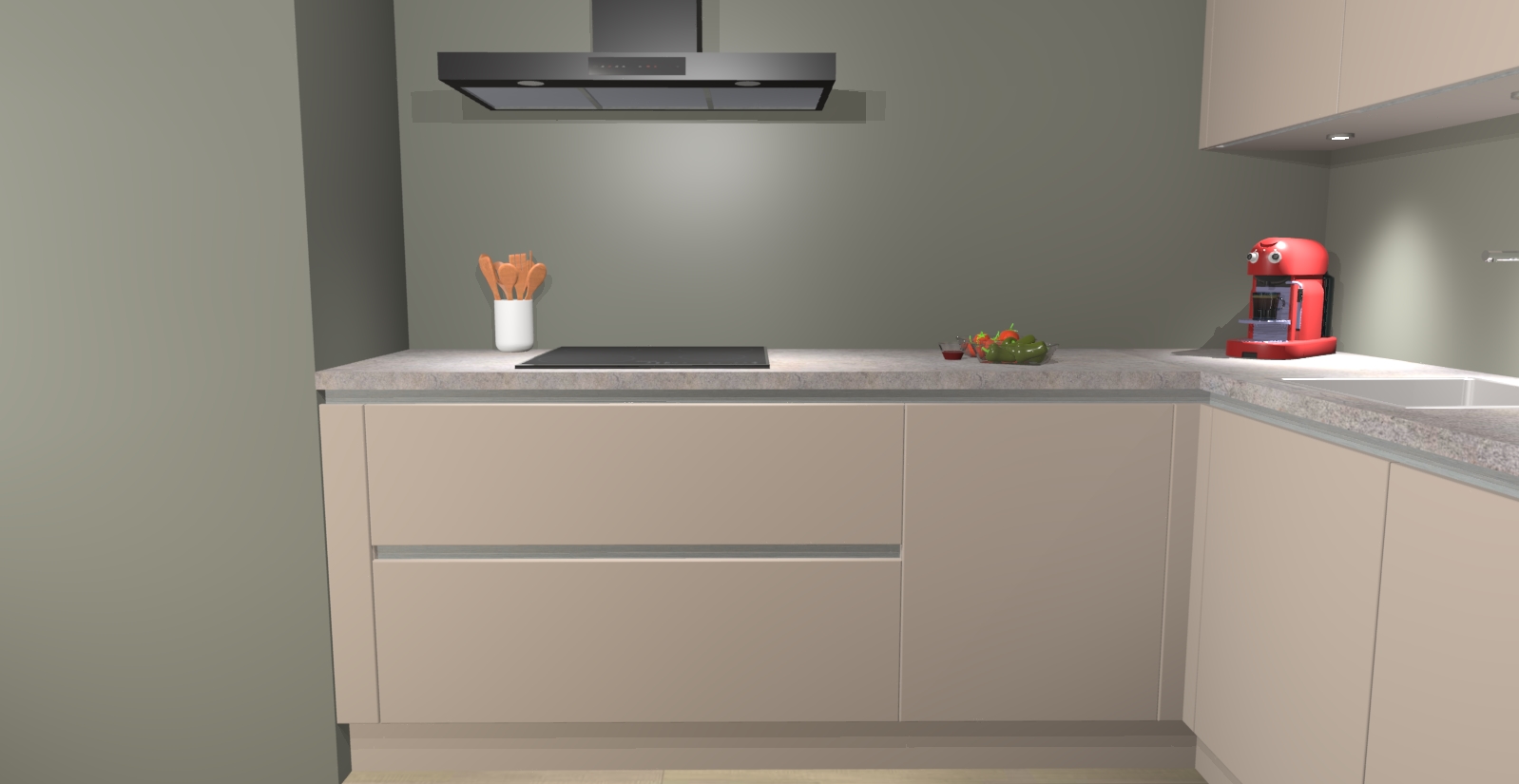 In deze box zijn alle kleuren verzameld van de deuren en werkbladen. Vraag de gratis kleurenbox aan en kijk thuis rustig verder!